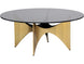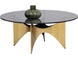 A glamorous coffee table from our Ikon collection. Features a stainless steel base with a brushed antique gold finish and a smoked grey glass top. Can be paired with coordinating console and end tables.
