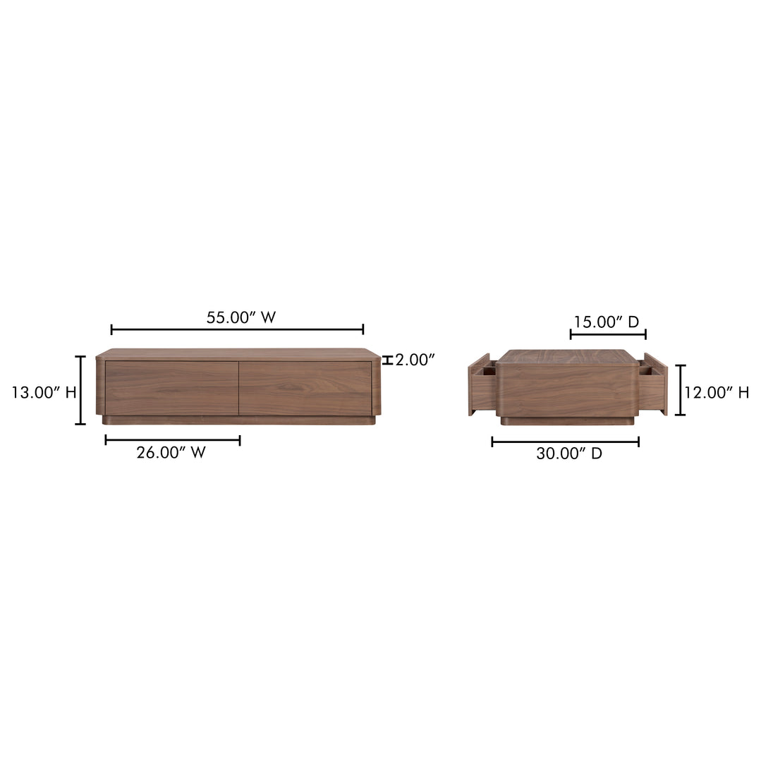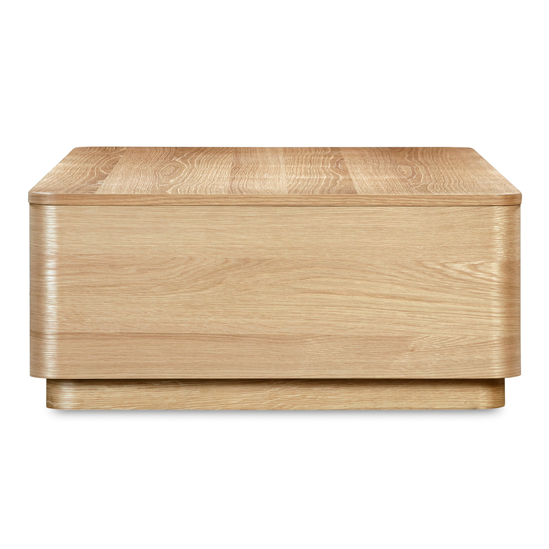 Natural allure meets minimalist design. The Round Off coffee table celebrates the captivating tones of natural wood grain, seamlessly integrated into a soothing design, embracing natural beauty and character. This coffee table boasts gently rounded corners and two large, push to open, smoothly gliding drawers that reveal generous storage space while embracing oak's natural beauty and character.