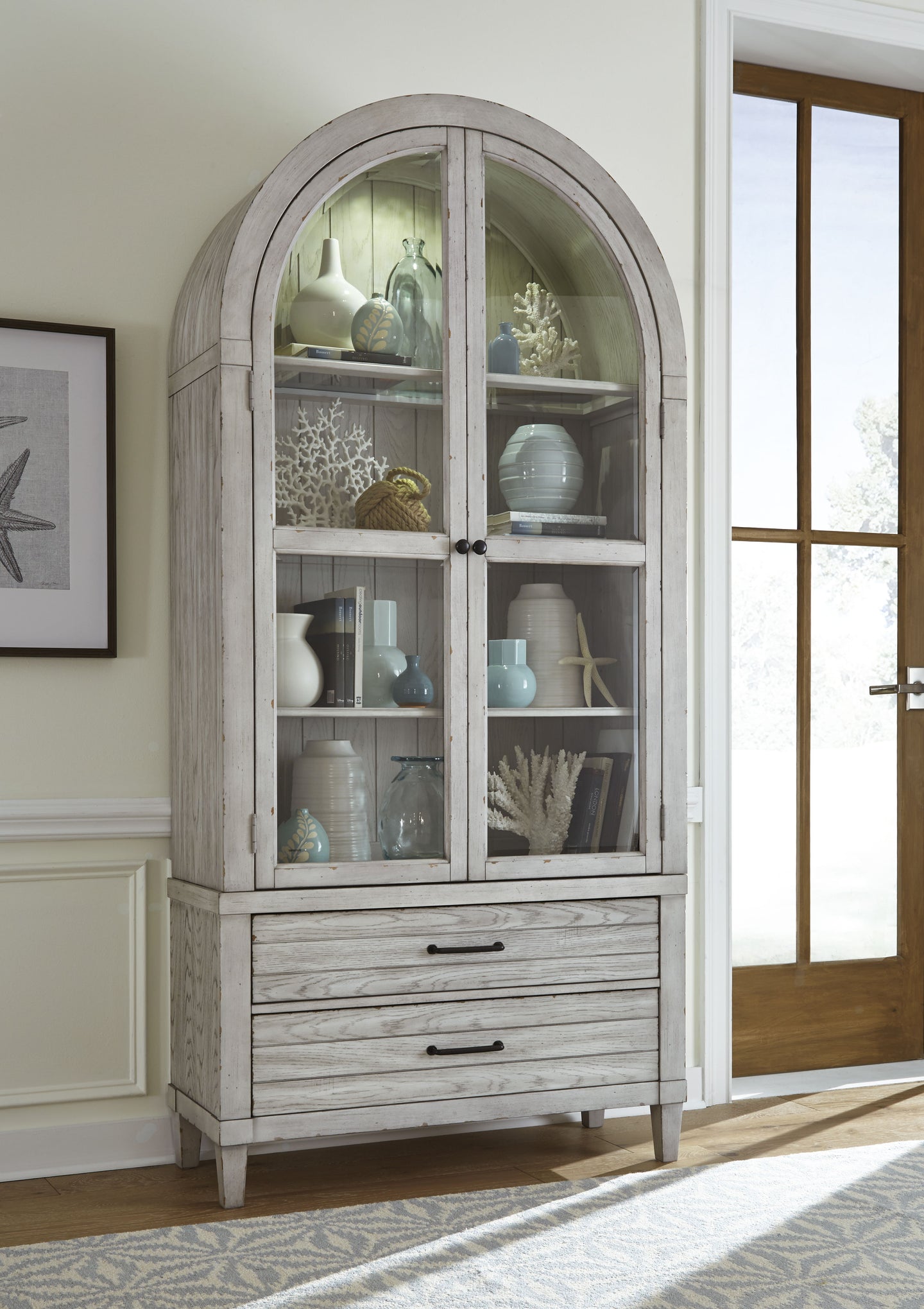 - Top Features Two Adjustable Glass Shelves and One Fixed Glass Shelf Behind Glass Doors