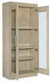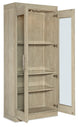 The sleek silhouette and serene neutral color palette of the Cascade Display Cabinet will help you create a retreat from your fast-paced lifestyle at home. Crafted of Oak Veneers in a soft taupe finish and tempered glass, the cabinet features two adjustable wood-framed glass shelves and one fixed wood-framed glass shelf and a light with a three-intensity touch switch.