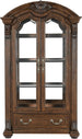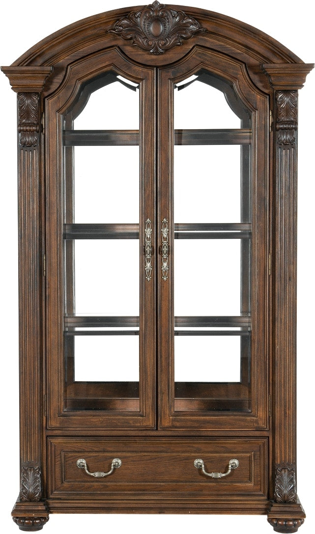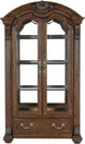 Product Description: The grand scale of the Bergen Collection invokes a timeless aesthetic for your home's traditional dining room. The dark oak finish highlights the distinct oak veneer of the collection, while also lending contrast to the decorative accenting of the curio's design. Faux keyhole hardware fronts the doors of the curio, while traditional bale hardware fronts the drawers. The glass doors of the curio allow for enclosed display of your tabletop accessories and decorative items while traditional accenting abounds throughout the piece with classic routed pilasters, moldings, and decorative pediments gracing the design.