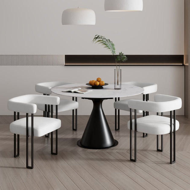 Calisto/Scarlet 5pc Dining Set in White Table with Ivory Chair