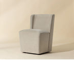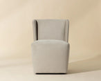 Soft curves define the classic silhouette of the Amita Wheeled Dining Chair. Fully upholstered in our tobacco tan faux leather for soft comfortable seating.