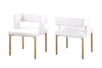 Introducing the elegant and sophisticated Anthony Dining Chair, a stunning set of 2 chairs designed to elevate your dining experience. With its contemporary styling and luxurious features, this chair set is sure to impress your guests and add a touch of glamour to your dining space. Each set includes two beautifully crafted chairs that boast a perfect blend of style and comfort. The sleek and modern design is complemented by the splayed gold-finished legs, which not only provide stability but also add a touch of opulence to the overall aesthetic. With its premium fabric cover, the luscious velvet upholstery creates a plush seating experience, inviting you to sit back and relax while enjoying your meals. The fabric is not only visually appealing but also feels incredibly soft to the touch, adding a sense of luxury to every dining occasion. Whether you're hosting a formal dinner party or enjoying a casual family meal, the Anthony Dining Chair is designed to impress. Its contemporary styling seamlessly blends with various interior design themes, making it a versatile choice for any dining room.