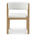 The April dining chair fuses playful proportions with material-driven design. Its minimal, modern aesthetic is highlighted by softly curved geometric legs and plush cushions, while soft fabric upholstery ensures enduring beauty.