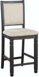 Specifications: Wood frame. Black finish. Fabric upholstery. Counter height design. Assembly required. Weight capacity: 250lbs. Minimum order qty 2. Fabric Type: Textured. Fabric Color: Beige. Fabric Content: 100 percent polyester. Fabric Cleaning Code: Upholstery (S). Prop 65 Information.