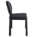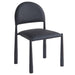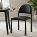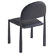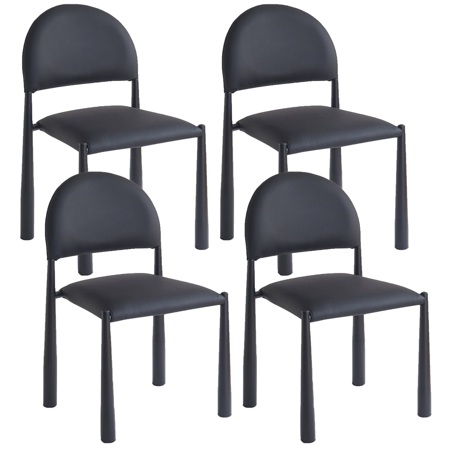 Mid-century influence on this modern chair has results in this unique dining chair. Rounded back and legs create an inviting look, while the textured black faux leather upholstery keeps it fresh and on-trend. Perfect for formal or casual spaces, will match with a variety of table styles and colours.