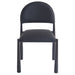 - Matte black, textured faux leather upholstery