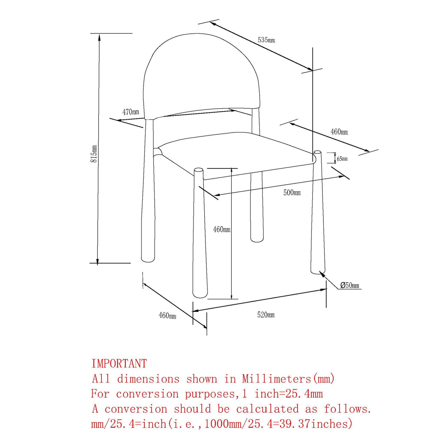 - Sturdy, cone-shaped metal legs with a matte black finish