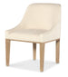 The Banyon Bay Upholstered Host Chair is a stylish and comfortable addition to any dining room. Fully upholstered with a barrel-shaped back and sloped arms, this chair is both supportive and elegant. The Desert Oak finish adds a rustic touch, while the Levi Oyster fabric gives it a soft, modern look. Perfect for the head of the dining table or as accent seating in a living space.