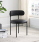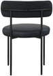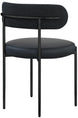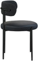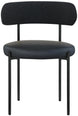 Bring modern comfort to the dining room with this Beacon black vegan leather and boucle fabric dining chair. Exquisitely designed to be one part utilitarian seat and one part art, this stylish chair turns heads from all angles. The seat comes upholstered in vegan leather for a luxe look while the back is covered in rich black boucle fabric. The iron metal frame features a matte black finish for an unmistakably modern look.