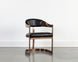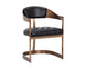 This ultra contemporary dining chair features a T-shaped back, tapered arms and an antique brass crown base. Stocked in cantina black bonded leather. Perfectly suited for various dining, kitchen and bar spaces of all sizes in either commerical or residential settings. Handle with Care: This design has been crafted with bonded leather. Bonded leather is a blend of reconstituted leather and synthetic materials crafted to reflect the natural characteristics of leather; as such, colour variations, markings, wrinkles, grooves and light scratches are acceptable and appreciated characteristics. No two pieces are alike. Visit our Product Care page for more information on how to ensure the lasting beauty of this piece.