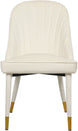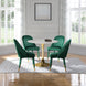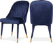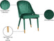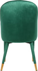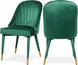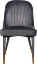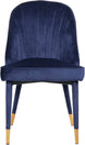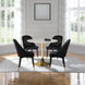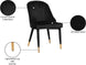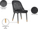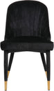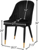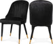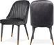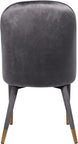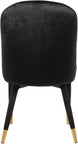 Seat guests in comfort and style in this Belle dining chair. Sumptuously appointed soft black velvet upholstery covers the chair's exterior, adding to its luxurious, upscale look and its soft, sleek feel. Gold tips on the legs of this handsome chair provide a minimal amount of contrast for added visual interest while the curved channel-tufted back cradles guests in comfort, so they want to stay longer. Pair it with other modern elements for an up-to-the-minute look in your room.