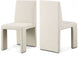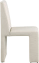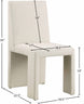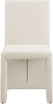 Enhance the ambiance of your dining area with these elegant Benson linen textured fabric dining chairs, which come in a set of two. Featuring a plush beige upholstery with a subtle white weave, these chairs are the perfect addition to your dining room makeover. The chairs' sturdy iron inner frame ensures durability and complements their art deco design, while their armless and floor-length backs add a touch of sophistication to your dining space, making it ideal for both casual meals and formal occasions. Bring a touch of style and comfort to your dining area with these beautiful chairs.
