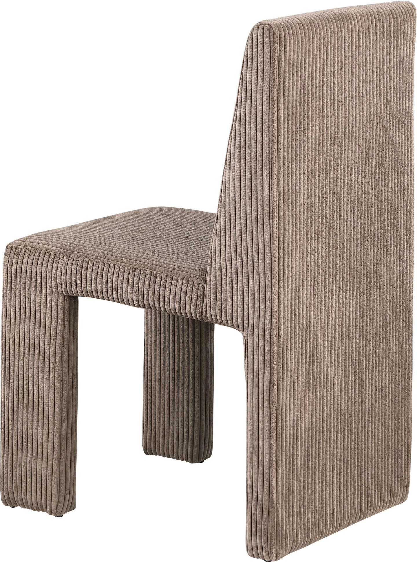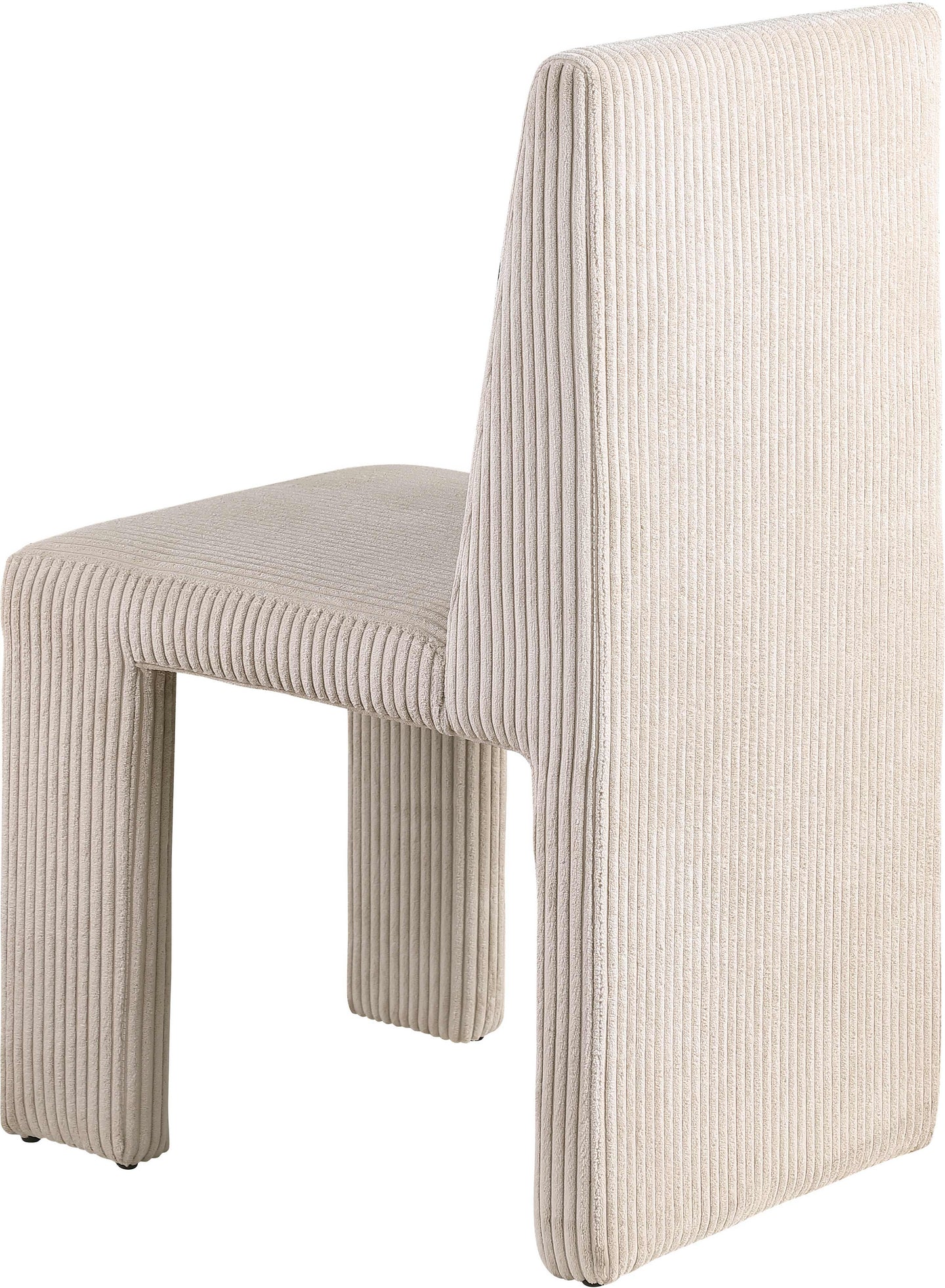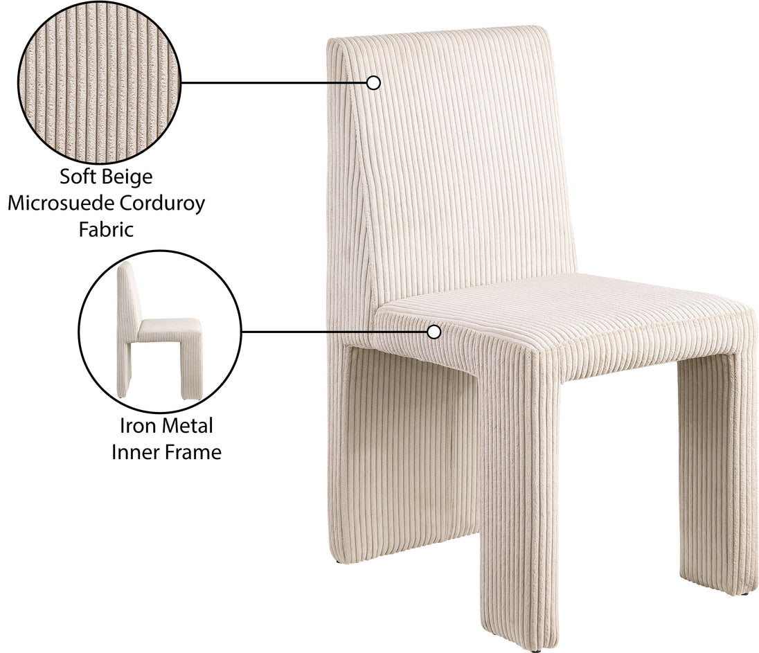 Unveil the elegance of the Benson dining chair, upholstered in soft beige microsuede corduroy fabric. Featuring an Art Deco design and a robust iron inner frame, this chair offers a perfect mix of luxury and resilience. The soft microsuede corduroy fabric and distinctive design make it an eye-catching addition to any dining area, ideal for enhancing both style and conversation.