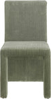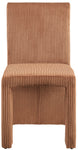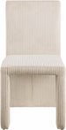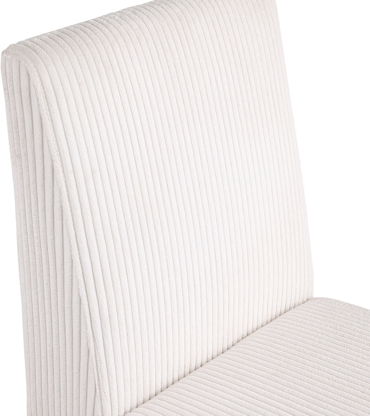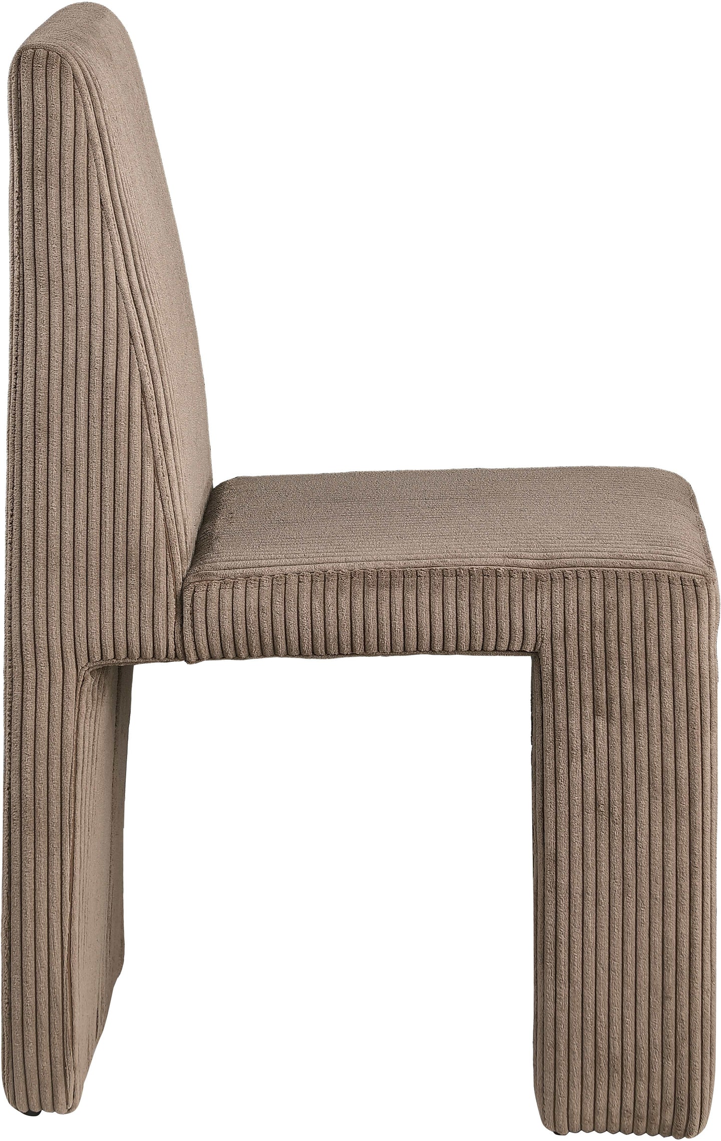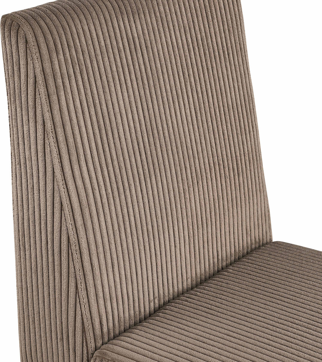 Unveil the elegance of the Benson dining chair, upholstered in soft beige microsuede corduroy fabric. Featuring an Art Deco design and a robust iron inner frame, this chair offers a perfect mix of luxury and resilience. The soft microsuede corduroy fabric and distinctive design make it an eye-catching addition to any dining area, ideal for enhancing both style and conversation.