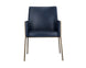 The Bernadette Dining Armchair features a shapely design with an exposed brushed antique brass frame. Upholstered in bravo admiral faux leather for added style and durability. Handle With Care: This design has been crafted with faux leather. Faux leather is manufactured to reflect the natural characteristics of leather; as such, colour variations, markings wrinkles, grooves, and light scratches are appreciated characteristics. No two pieces will be alike. Visit our Product Care page for more information on how to ensure the lasting beauty of this piece.