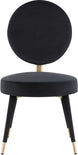 Give your dining area a chic touch with this Brandy black velvet dining chair from Meridian Furniture. Featuring a rounded seat and rounded backrest, this chair brings an element of style to your dining table. Soft black velvet upholstery makes this chair a luxury to sit on, providing softness and comfort while you eat breakfast, lunch, or dinner. Its brushed brass finish pops out from the the black velvet upholstery, giving it a contemporary style that complements your home.