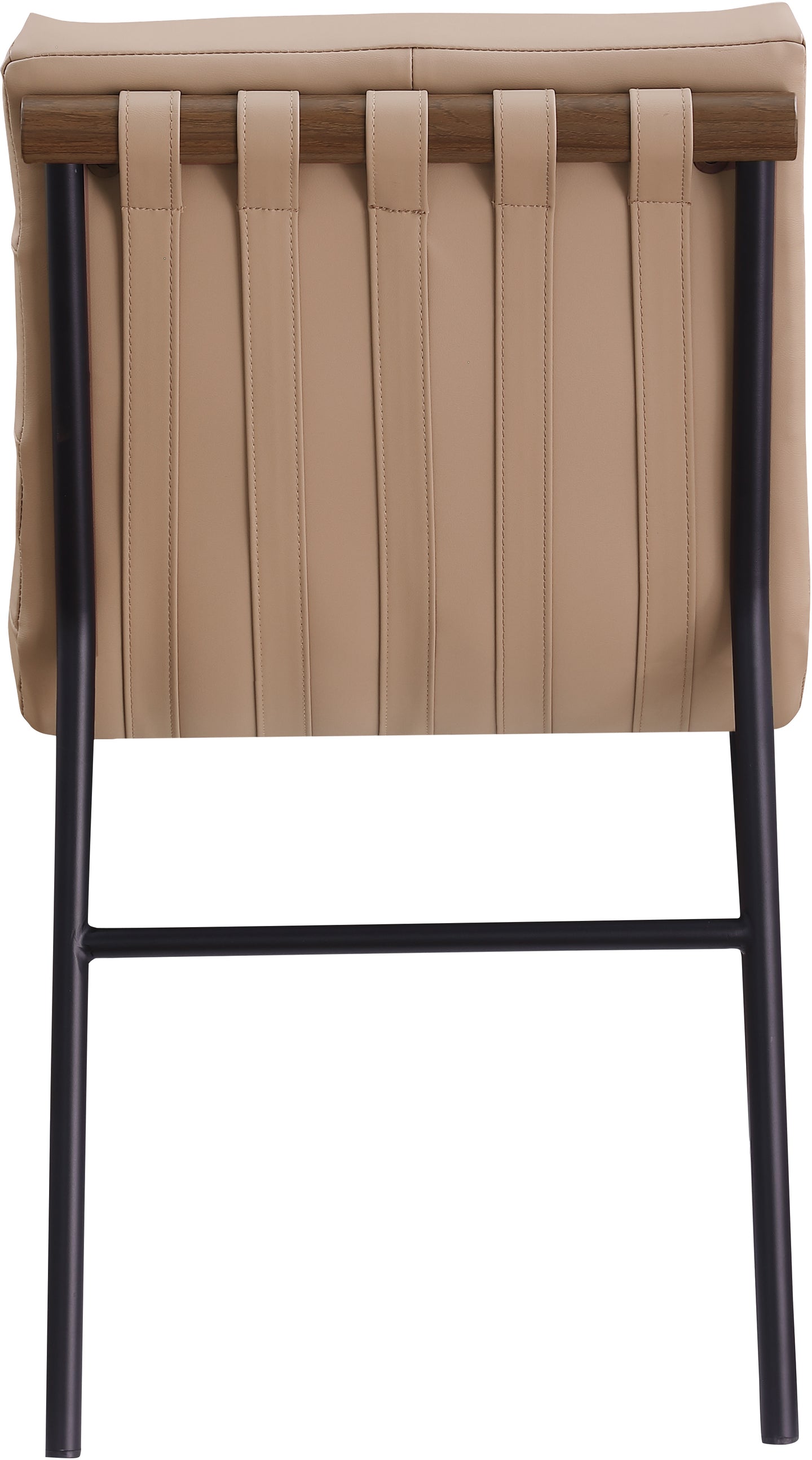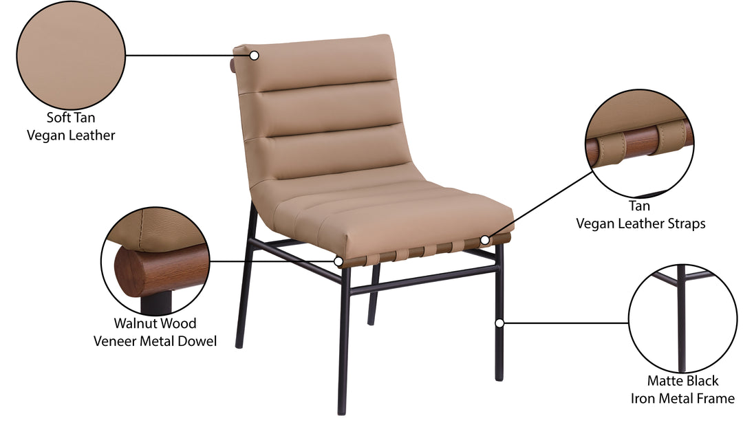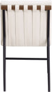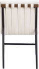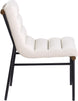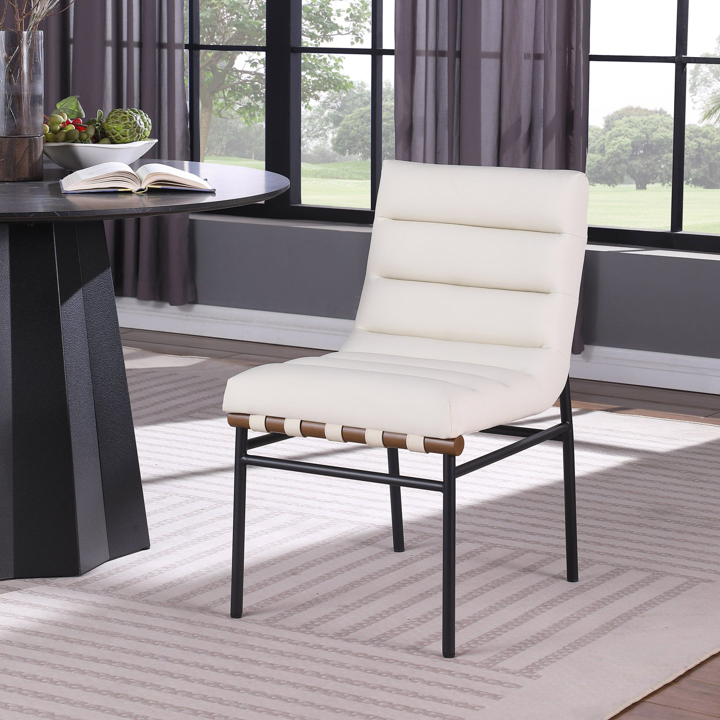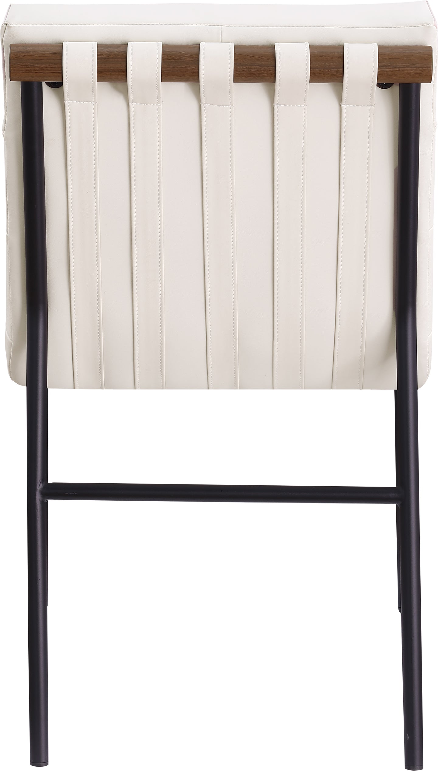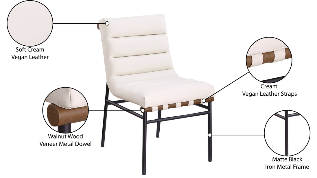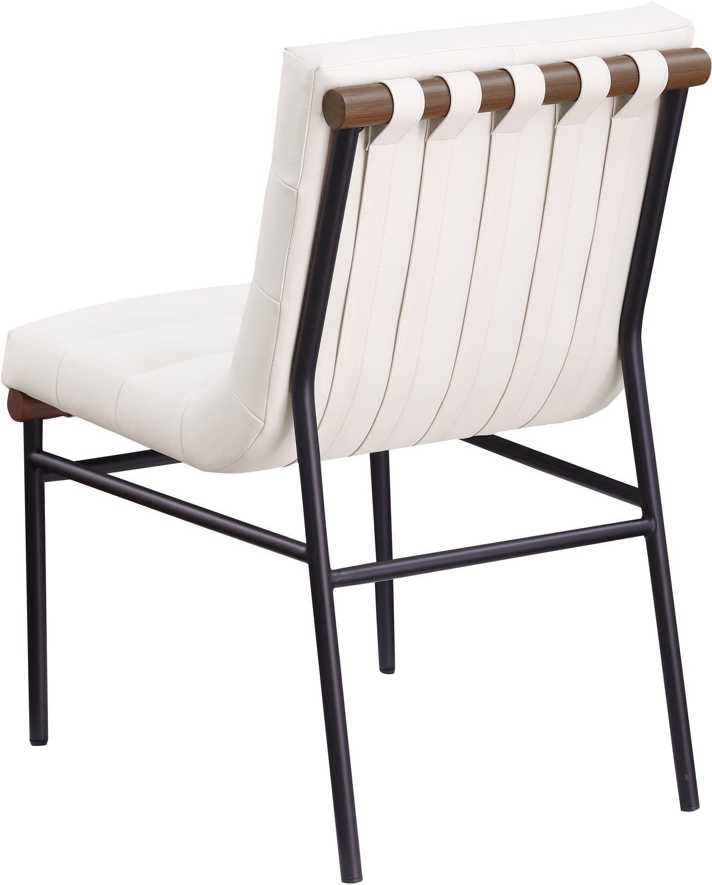 Every guest feels like a VIP when they're seated in this Burke cream vegan leather dining chair. A tufted back adds textural appeal and soft, posh comfort to every meal while walnut wood veneer metal dowels lend this chair a rustic touch. The matte black metal frame is sturdy and supportive, while an armless design facilitates easy movement and good dinner conversations. Soft vegan leather gives you the luxe look of leather without the maintenance commitment.