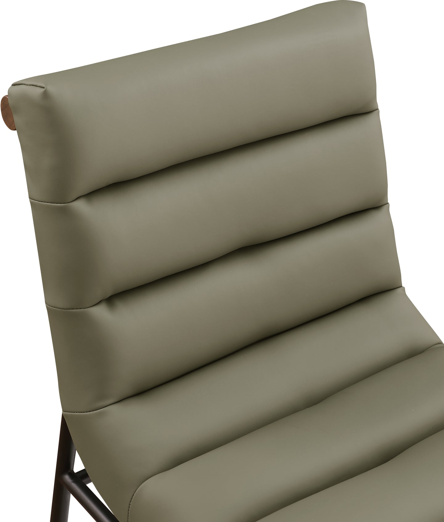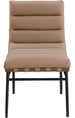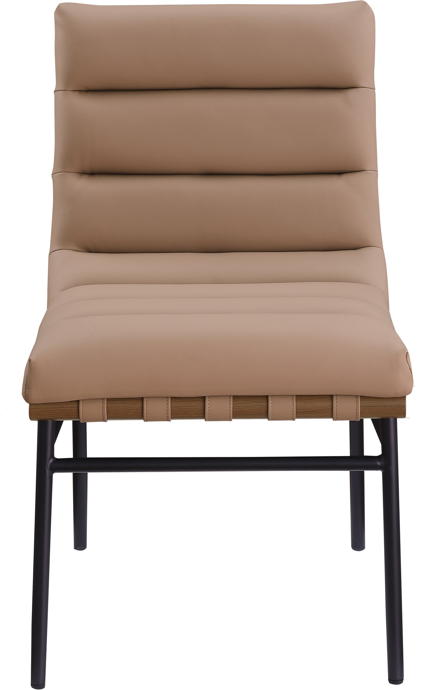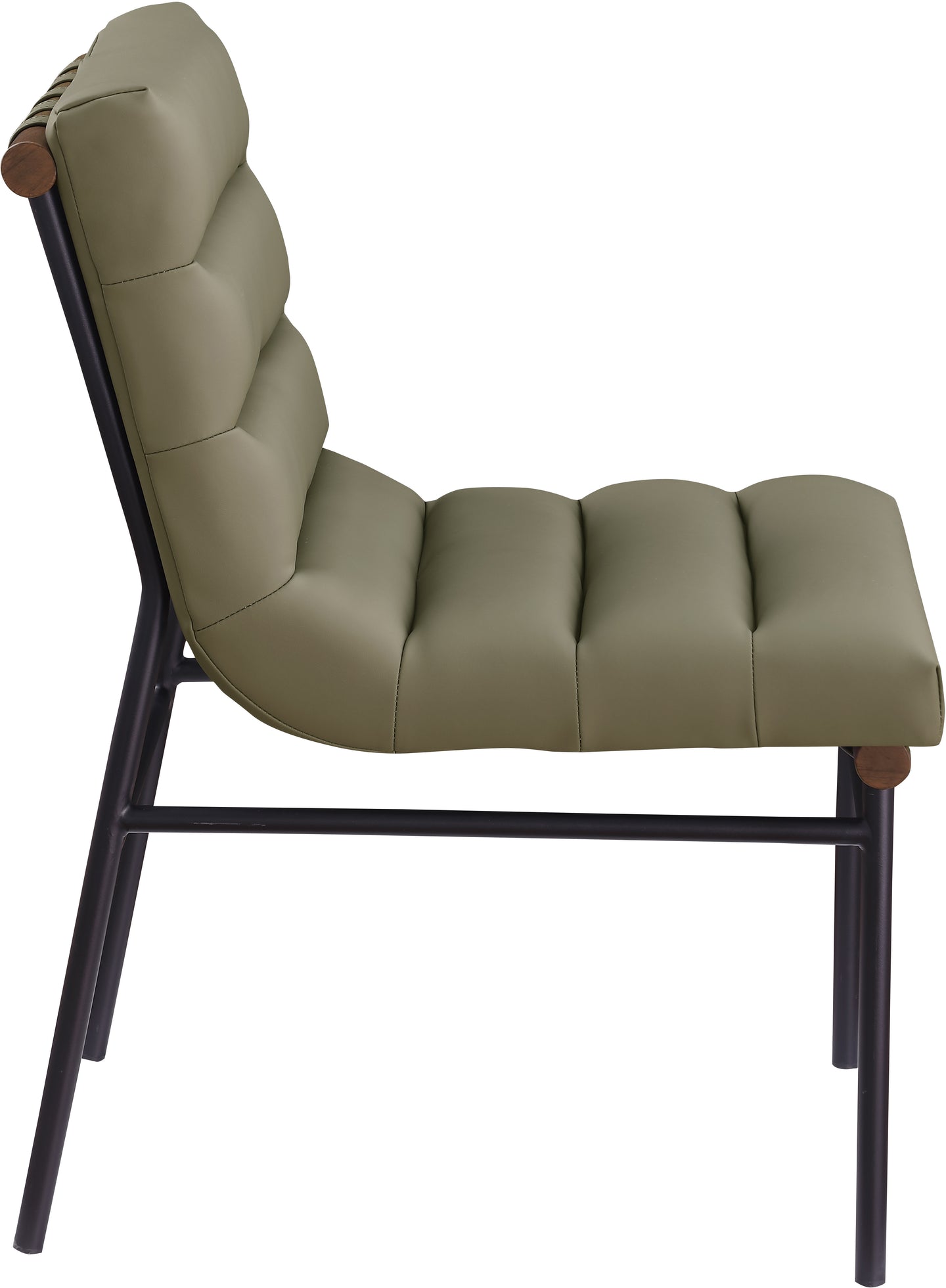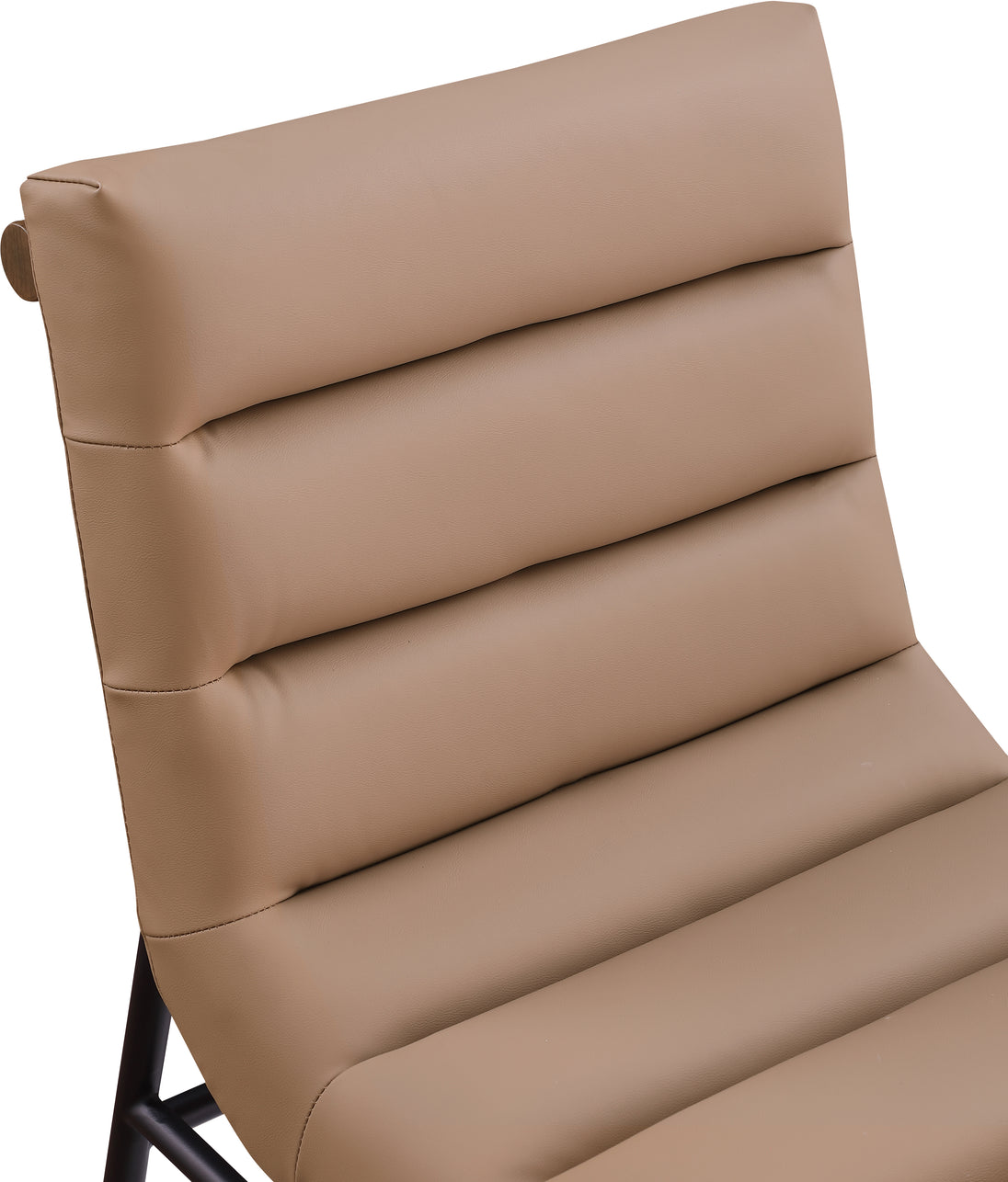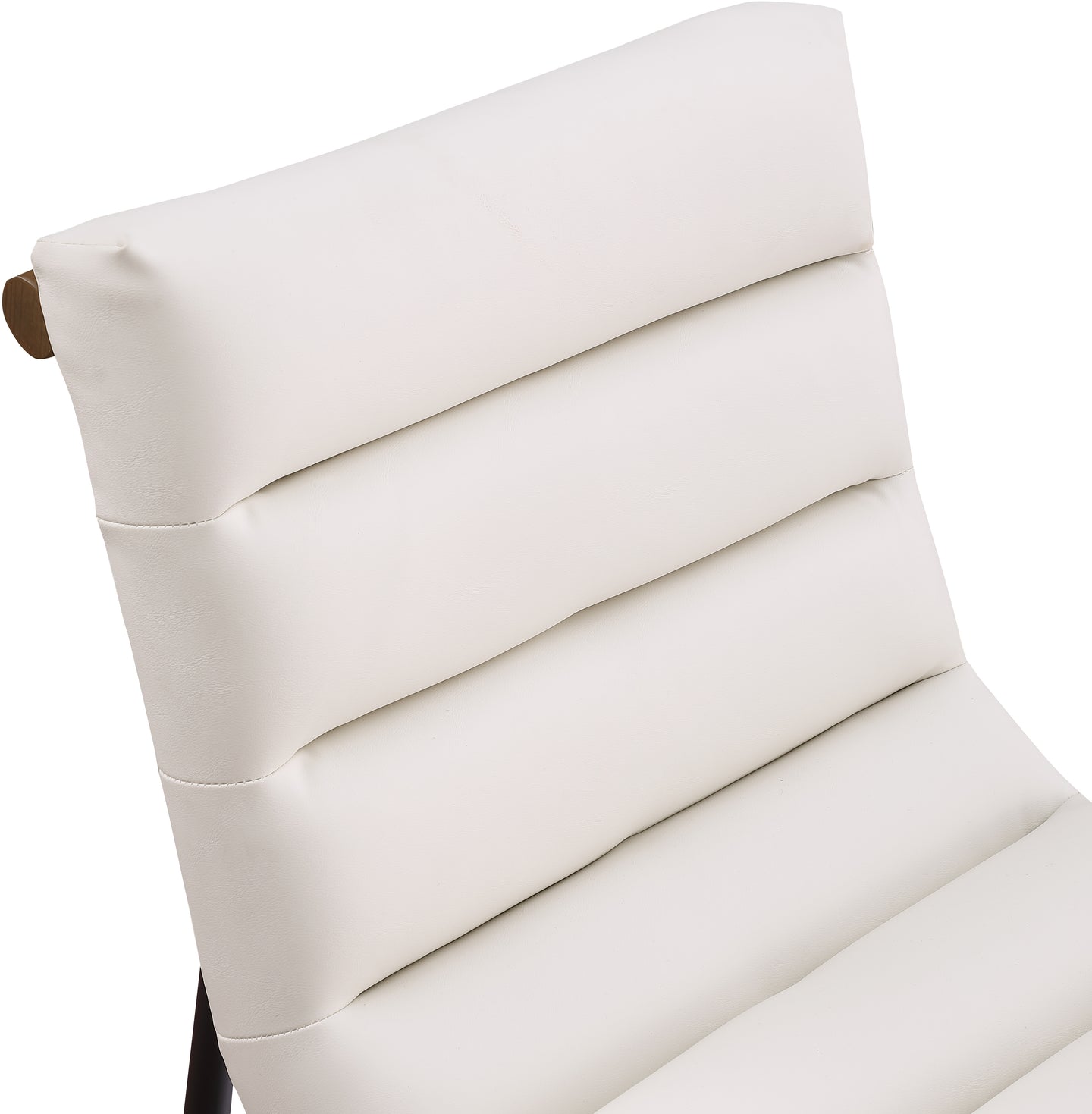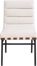 Every guest feels like a VIP when they're seated in this Burke cream vegan leather dining chair. A tufted back adds textural appeal and soft, posh comfort to every meal while walnut wood veneer metal dowels lend this chair a rustic touch. The matte black metal frame is sturdy and supportive, while an armless design facilitates easy movement and good dinner conversations. Soft vegan leather gives you the luxe look of leather without the maintenance commitment.