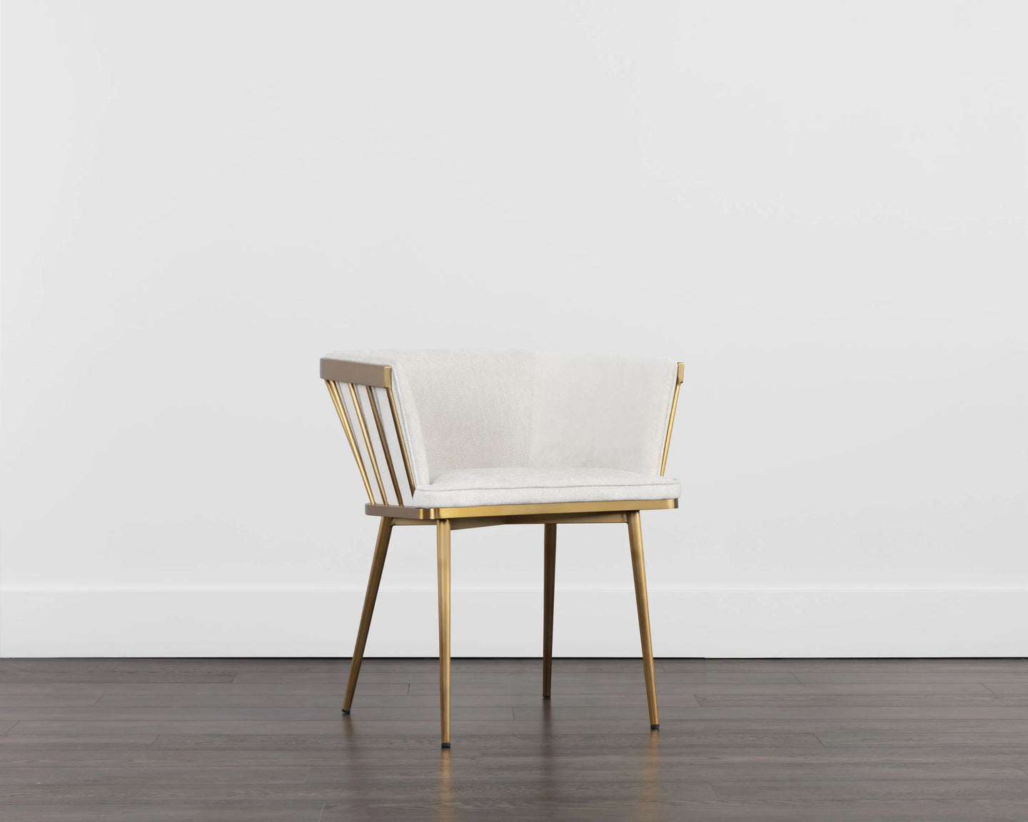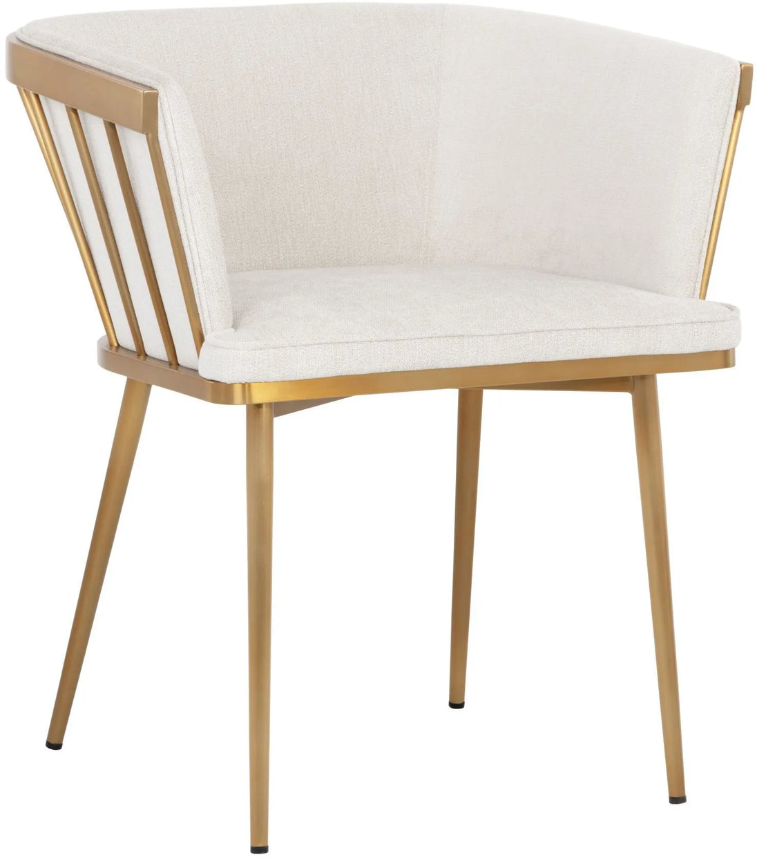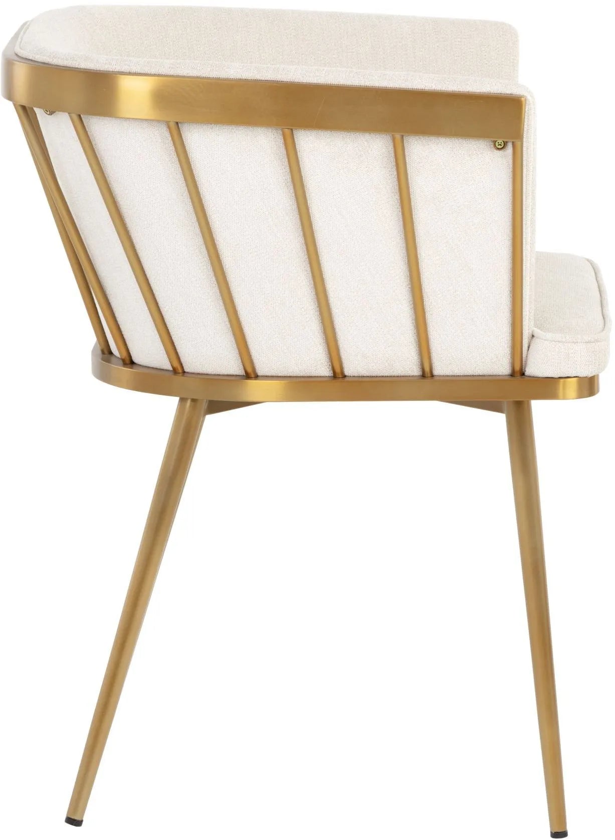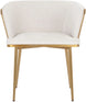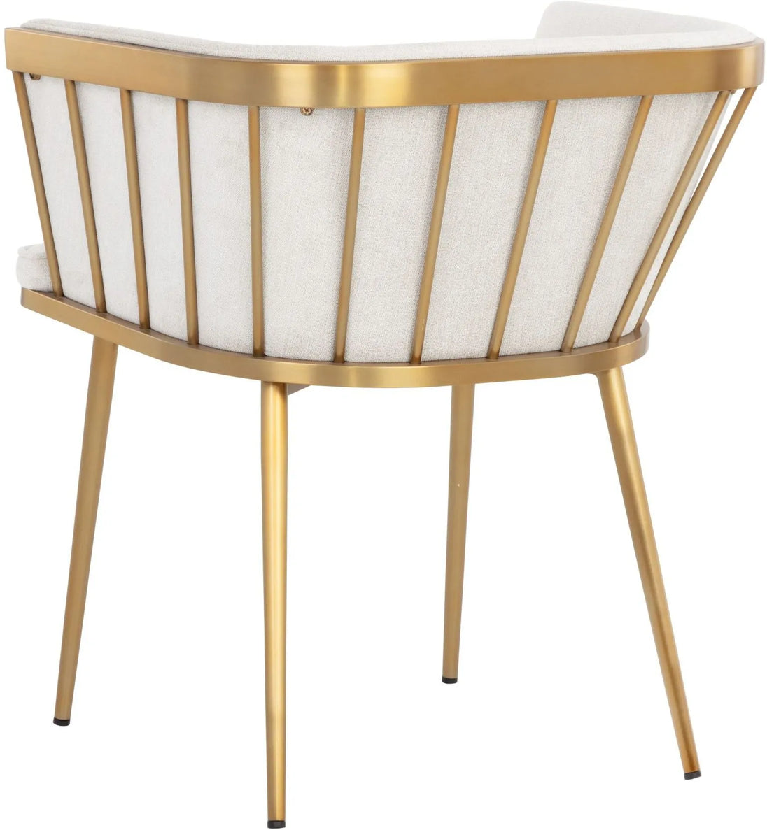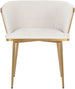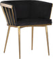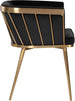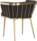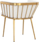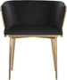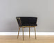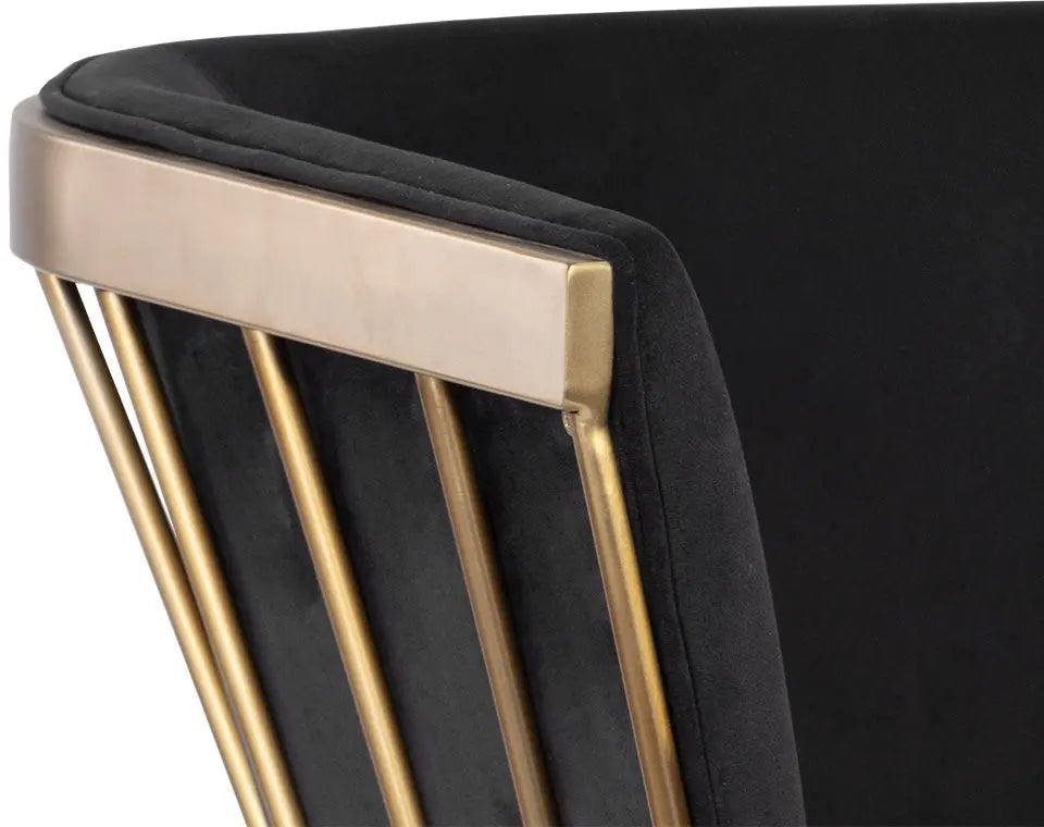 Elegant and modern style unite in this beautiful dining armchair. Stocked in abbington black fabric with a brushed gold stainless steel cage-like frame. Also available in polo club muslin.