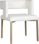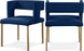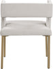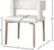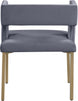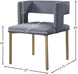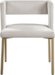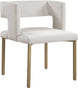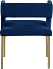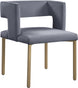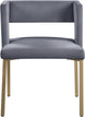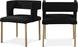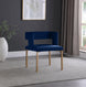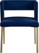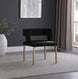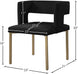 Add the Caleb black velvet dining chair to your dining room for the ultimate in comfort and style. This chair has a square seat and low back which is open at the bottom to the rear and on the sides. Four brushed gold square iron legs provide support and stability, while the chair's soft velvet and cushioning offer an air of luxury. Several available tables make a perfect companion to this contemporary piece.