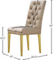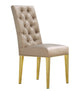 Turn to these Capri beige velvet dining chairs for a modern look in your contemporary dining space. This chair features a classic parsons design with a slightly slanted back that's button tufted to give it a textural look. The legs are made from stainless steel to give them strength and added support as you sit, and they're finished in a rich gold tone hue for a regal and sophisticated look.