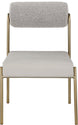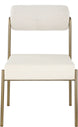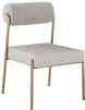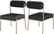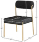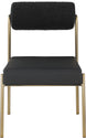 Transform your dining area with this Carly black vegan leather seat/boucle fabric back dining chair. Its black vegan leather seat provides you with a soft place to sit, while its rich black boucle back amps up the comfort level an extra notch. Its brushed brass iron frame ensures stability and durability, so you can enjoy this chair for years to come. This chair is perfect for any home featuring a contemporary design.
