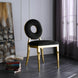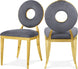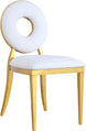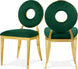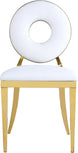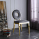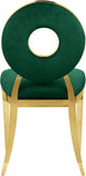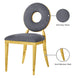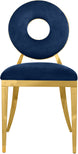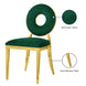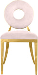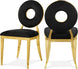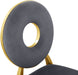 Yield to the decorator within when you bring home this Carousel velvet dining chair. This chair features a metal frame and legs finished in gold stainless steel for a modern touch, but the real star of the show is the donut-shaped seat back that exudes undeniable contemporary charm. The seat and back are both plumply filled for comfort and upholstered in soft black velvet for a chic look.