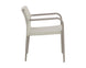 The Casella Stackable Dining Armchair is defined by its simplicity. Features cream rope weaving on the seat and backrest. Finished with a greige powder coated aluminum frame that complements the neutral palette.