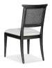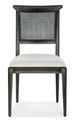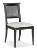 Inspired by the tropical craftsmanship of the West Indies and the woven cane accents of classic British and Dutch Colonial design, the Charleston Upholstered Seat Side Chair has an oyster-colored fabric seat and a cane back. The finish is Garden Gate, inspired by the timeless decorative iron gates that adorn the stately properties of Charleston.