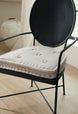 Welcome your guests with this iconic, industrial luxe Ciao Bella Metal Arm Chair with a romantic French attitude. The metal frame is finished in an Aged Bronze, and the removeable, reversible Tuscan White seat cushion is button tufted on one side with French primitive tufting on the other for comfort.