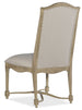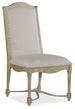 The delight is in the details of the Belgian-inspired Ciao Bella Upholstered Side Chair. From the delicate, curved, intersecting stretcher base to the tiny tack-nail trim outlining the soft gray-white seat and back to the scalloped seat base, this versatile chair is timeless and inviting. The natural-colored finish is soft and aged and complements the Tuscan gray-white fabric perfectly.