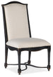 The delight is in the details of the Belgian-inspired Ciao Bella Upholstered Side Chair. From the delicate, curved, intersecting stretcher base to the tiny tack-nail trim outlining the soft gray-white seat and back to the scalloped seat base, this versatile chair is timeless and inviting. The exquisite aged black complements the Tuscan gray-white fabric perfectly.