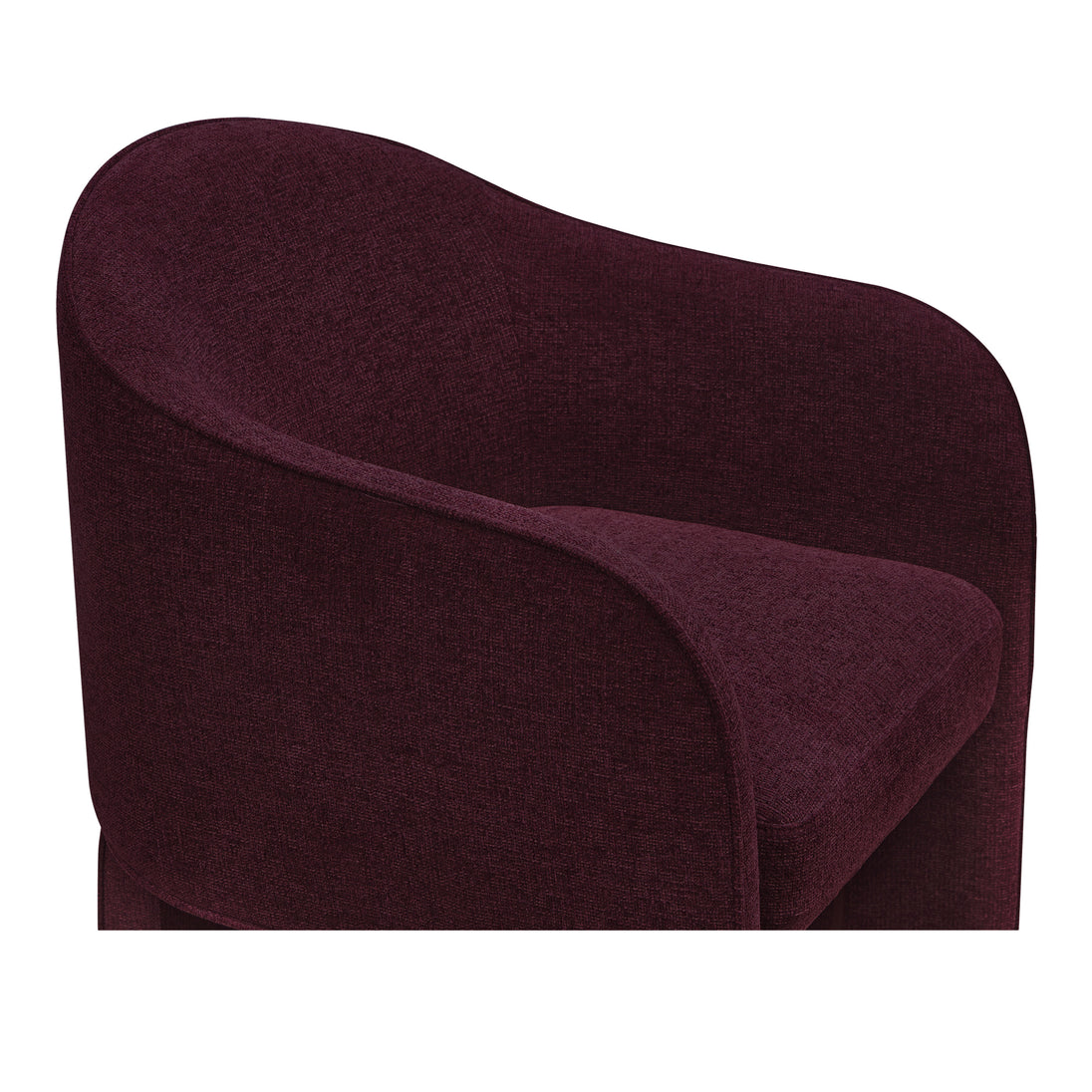 Fully upholstered in easy-to-clean performance fabric and generously sized, the Clara dining chair is all about comfort with a thoughtfully rounded back and gently curved armrests that add a touch of elegance and femininity. The sleek and minimalistic 3-legged base provides a clean and refined foundation.