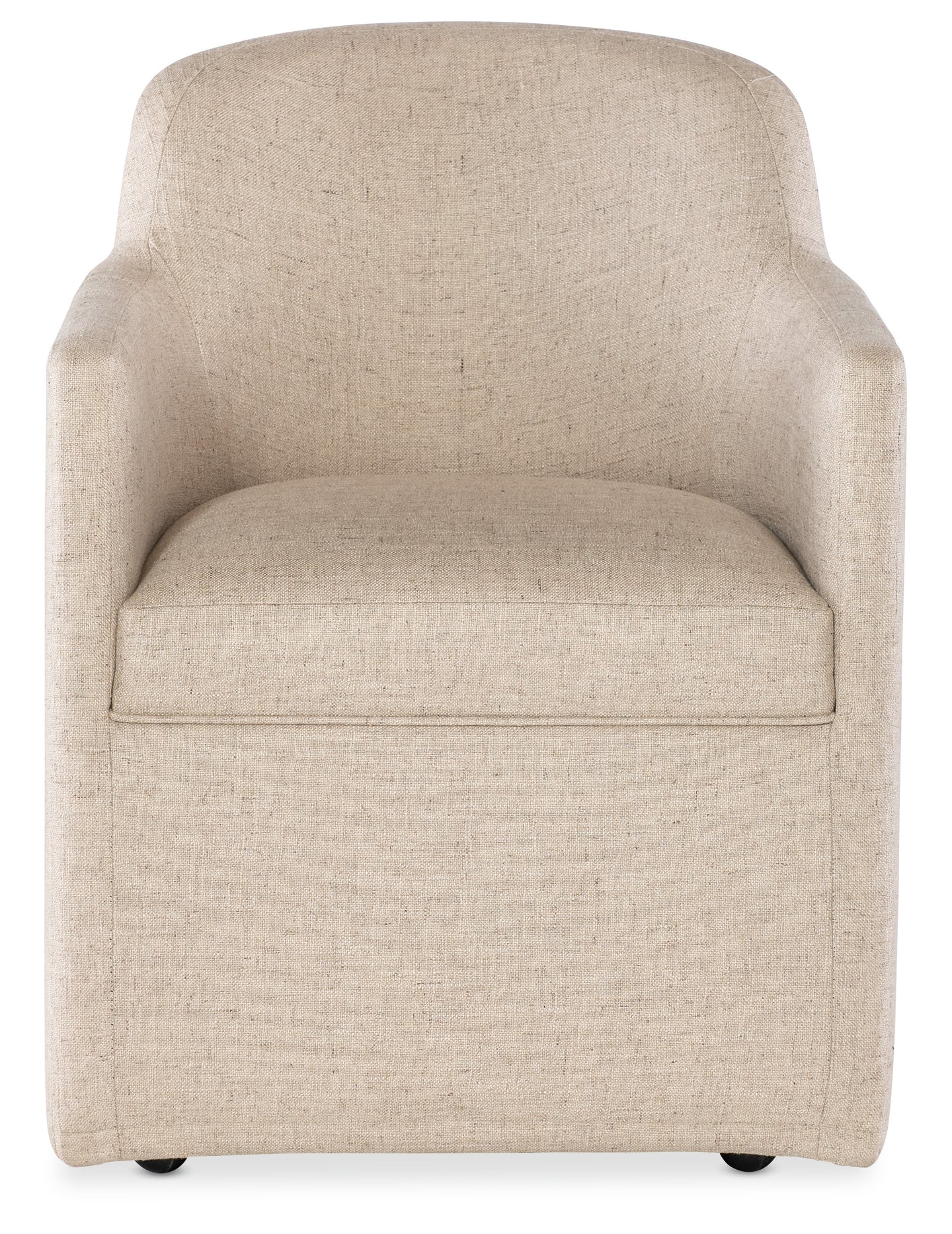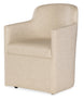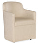 The Izabela Upholstered Arm Chair in Artisan Barley from the Commerce & Market collection combines comfort with contemporary design. Upholstered in a performance fabric with a mix of polyester, viscose, and linen, this chair features a full fabric covering on the seat, back, and outer frame. The barrel-style design and casters make it perfect for dining or office spaces, allowing mobility and style. Available in a neutral beige tone, it’s designed to blend seamlessly with any decor.