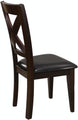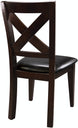 Product Description: Adorn your dining area with Crown Point Collection.?This grand scale casual dining in warm merlot finish is as strong and durable as they are stunning.?Attractive X-back dining chair with comfortable leather-look brown seat completes the unsophisticated streamlined look.