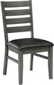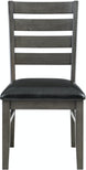 Product Description: The Nashua's transitional styling utilizes classic design elements to create a look that serves as the catalyst of the decorative versatility of your casual dining room. A gray finish over mango veneer highlights the wood's grain. The wood-framed side features a black faux leather padded seat.
