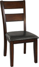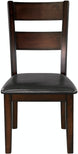 Product Description: Transitionally styled for your home is the Mantello Collection. The side chair's cherry finish over mango veneer and classic styling will provide the perfect seat for your mealtime gatherings. Dark brown faux leather covers the side chairs for complementing contrast to the wood's finish.