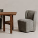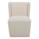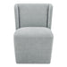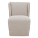 The Cormac rolling dining chair is all about comfort with a generously padded seat and backrest, a slight curve of the back and caster wheels that effortlessly glide across the floor. Crafted from high-performance fabric that is soft to the touch yet resilient against stains, spills, and daily wear.