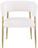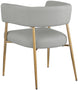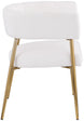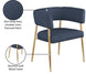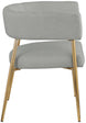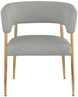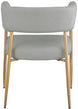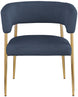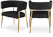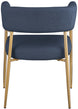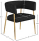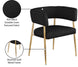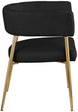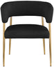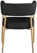 Enliven your dining area with the black Creston linen textured fabric dining chair. Upholstered in rich black durable linen textured fabric, this dining chair is not only stylish but also built to last. The brushed gold metal frame adds a touch of luxury, perfectly complementing its contemporary design. The curved back and plush cushioned seat ensure an inviting and comfortable dining experience. Whether it's for daily meals or special occasions, the Creston dining chair combines modern aesthetics with comfort.