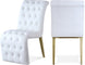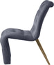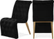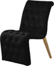 Usher in a new era in your dining room with this Curve velvet dining chair to impress your guests. This chair features an elongated front that sweeps the floor for a look that's luxe to the max. Soft black velvet feels sleek and rich to the touch, giving it a refined and elegant feel. Its rich gold iron legs and detailed button tufting ensure that this chair takes on a decidedly modern vibe.