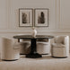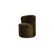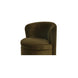 The Dane swivel dining chair adds sumptuous comfort with faux green mohair upholstery enveloping its gentle curves. A 360-degree swivel base facilitates effortless engagement, perfect for intimate conversations.