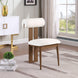 Add a touch of contemporary beauty to your dining room with the Dario Vegan Leather Dining Chairs. These chairs come with a unique back-hugging rolled pillow support that enhances comfort and gives them a stylish look. The rich cream vegan leather on the back and seat is soft to the touch and easy to maintain, even in a busy household. The walnut wood-like metal frames complete the look and provide sturdy support for long-term use and enjoyment.