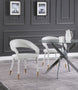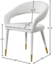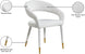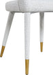Settle in for a meal with friends seated in this Destiny boucle fabric dining chair. Soft cream boucle fabric upholstery makes this dining chair a sleek and inviting option for pairing with your favorite dining table. The rounded back adds comfort to mealtime and lends the chair a chic, eye-grabbing touch, while tapered legs topped with gold tips give the chair an elegant finish.