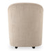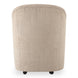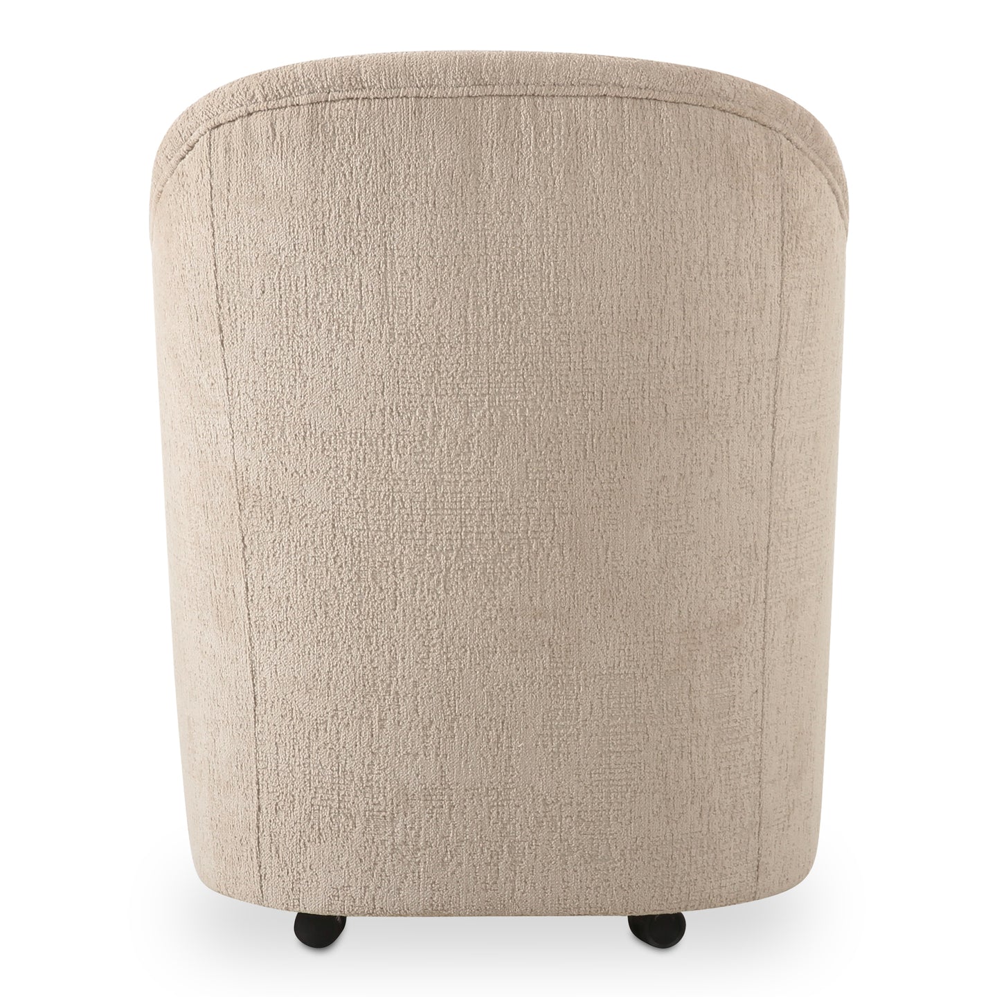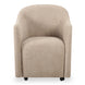 An updated take on the classic barrel chair, the Drava rolling dining chair is all about comfort-driven design with a continuous curve from arms to back and a squared padded seat wrapped in soft, textured upholstery for ultimate comfort with added versatility--its rolling base can be replaced with included plastic legs to create stationary seating.