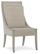 Exuding a feeling of comfort and simplicity, the Elixir Host Chair will help you extend gracious hospitality in your home. With a fabric seat and fully upholstered back in a lovely neutral color, the wood finish is in a serene gray beige applied to lightly sand-blasted walnut veneer for a textured look. A loose-pillow back adds extra comfort, and the splayed front legs add extra flair.