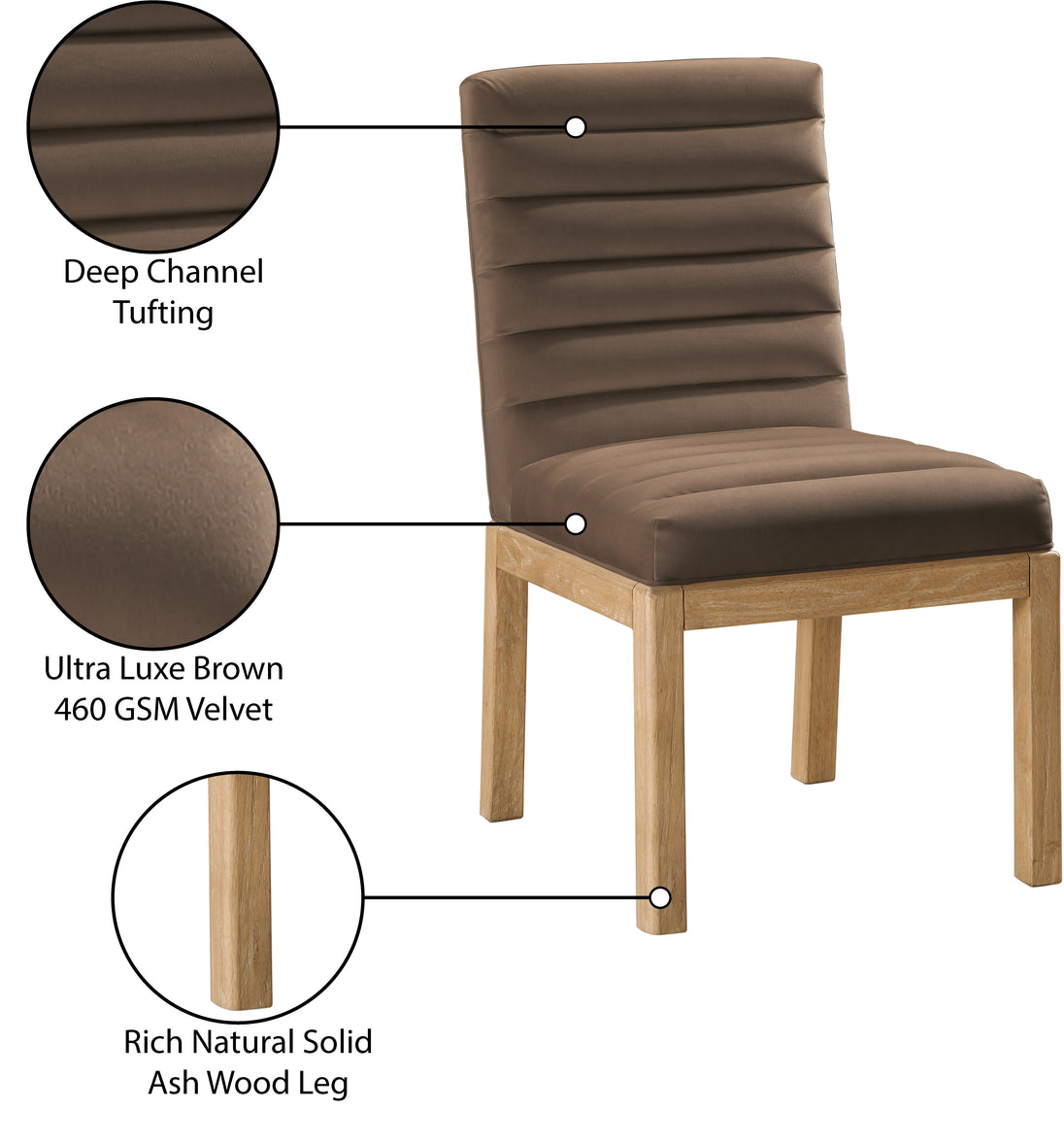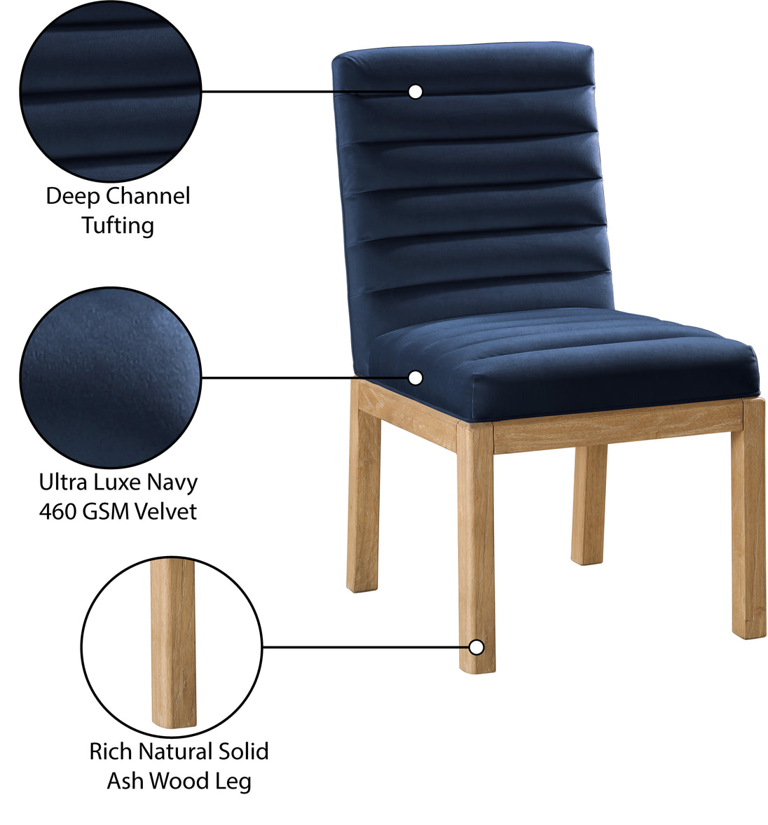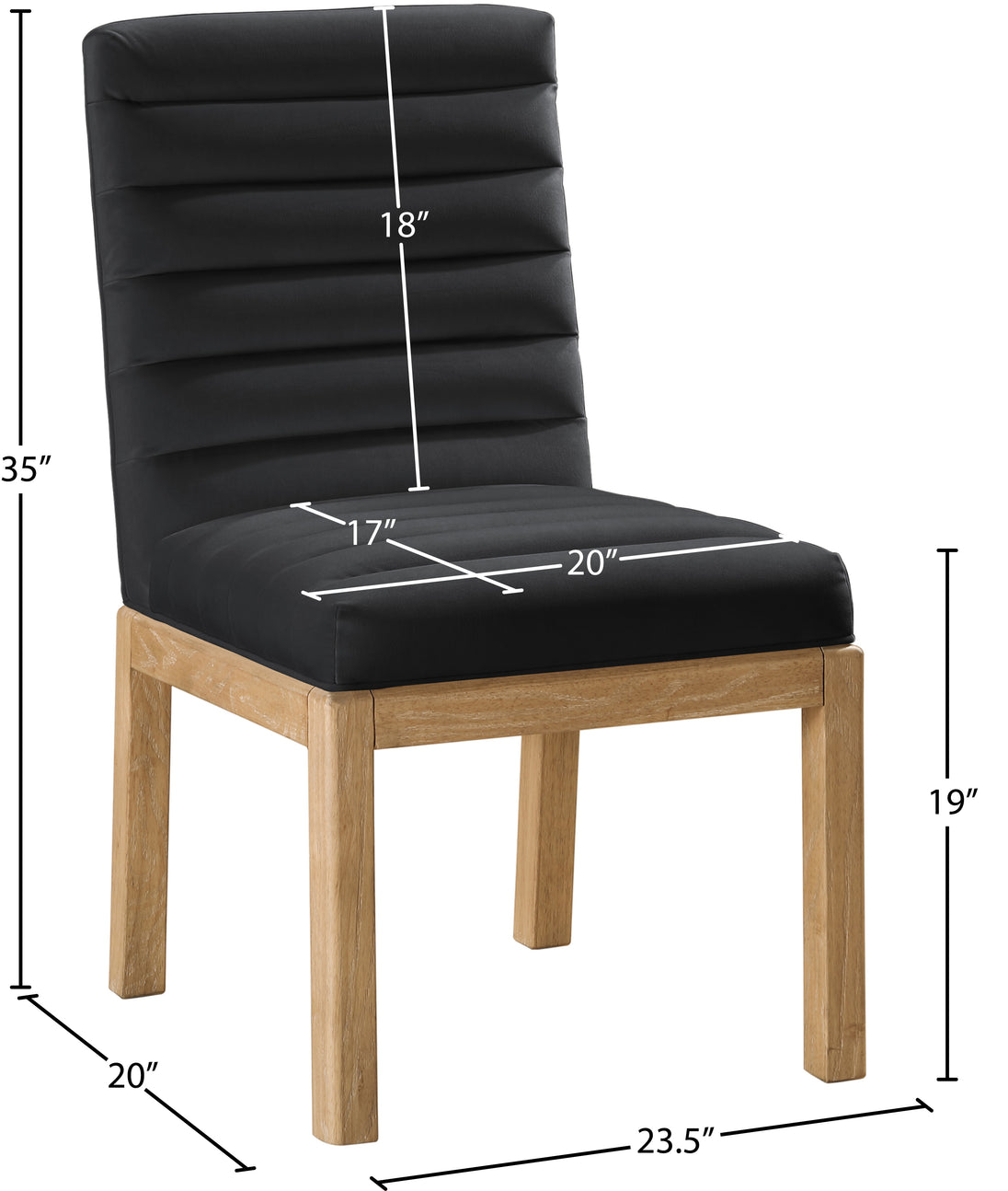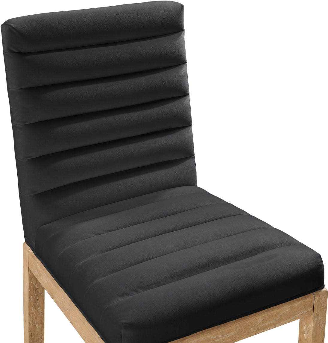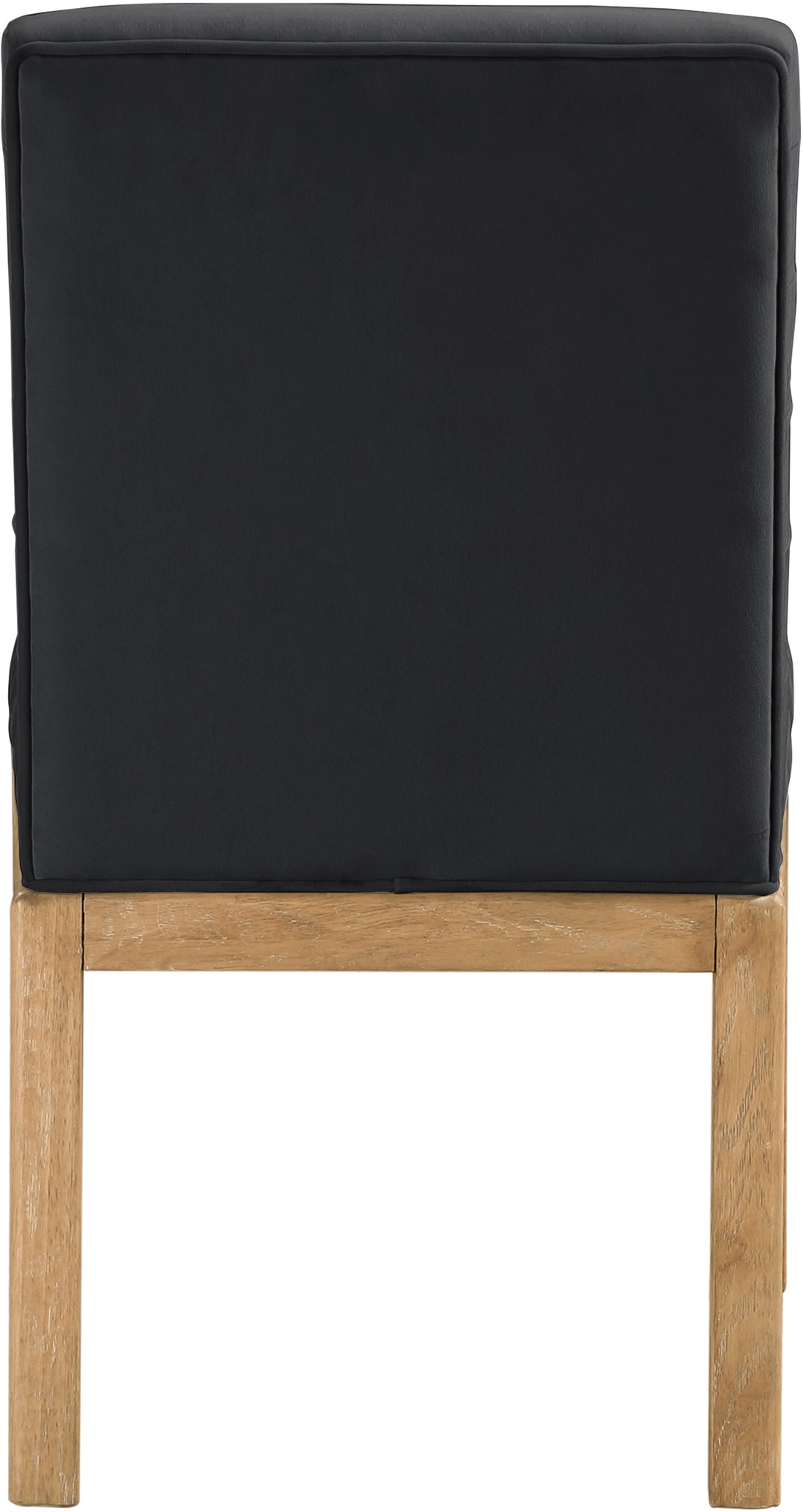 Transform your dining area with the Evelyn dining chair, featuring luxurious black velvet upholstery. Supported by rich natural solid ash wood legs and detailed with deep channel tufting, this chair exudes both durability and opulence. The 460 GSM velvet offers a sumptuous texture, while the contemporary design ensures it makes a striking addition to any space. This chair seamlessly blends style and comfort, perfect for creating a refined dining experience.
