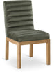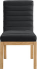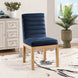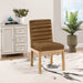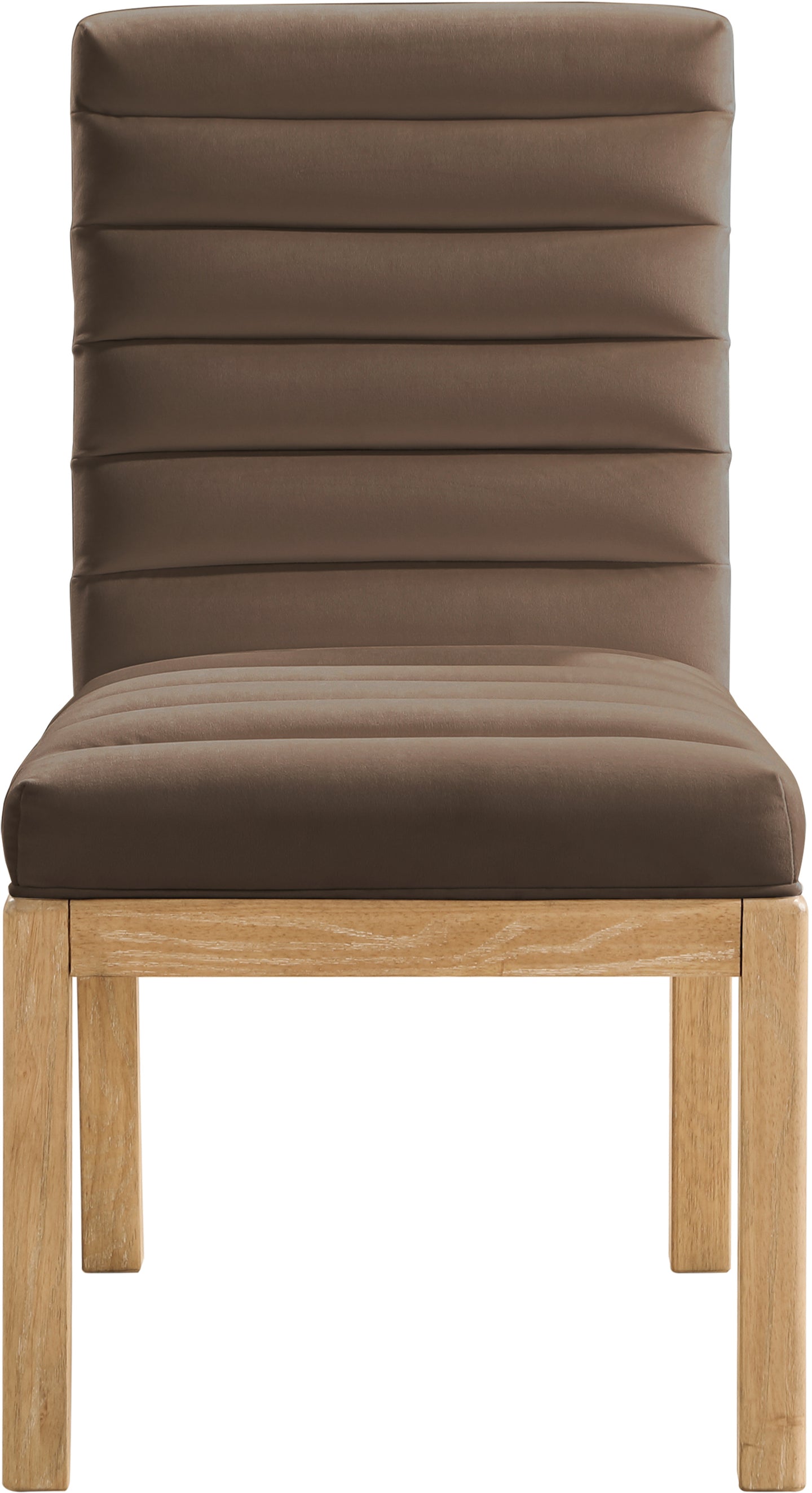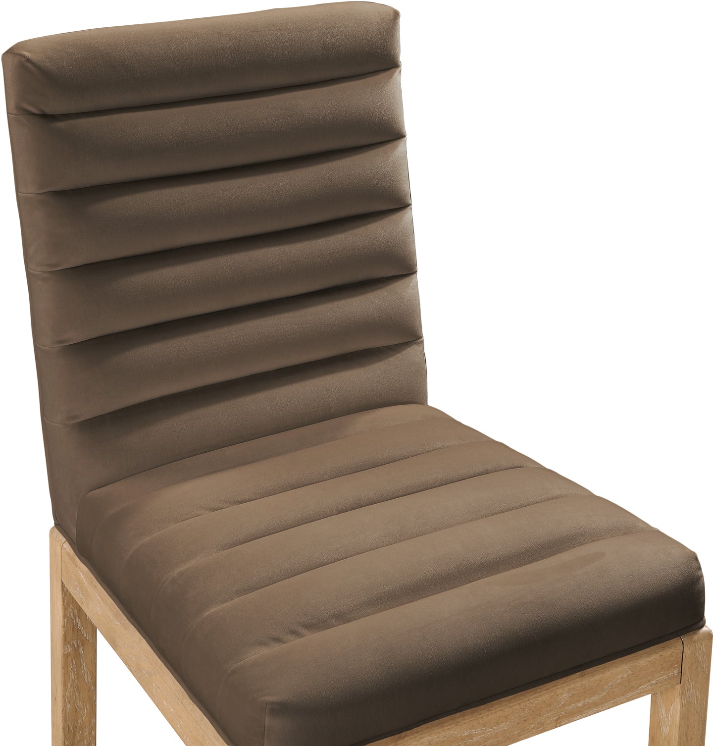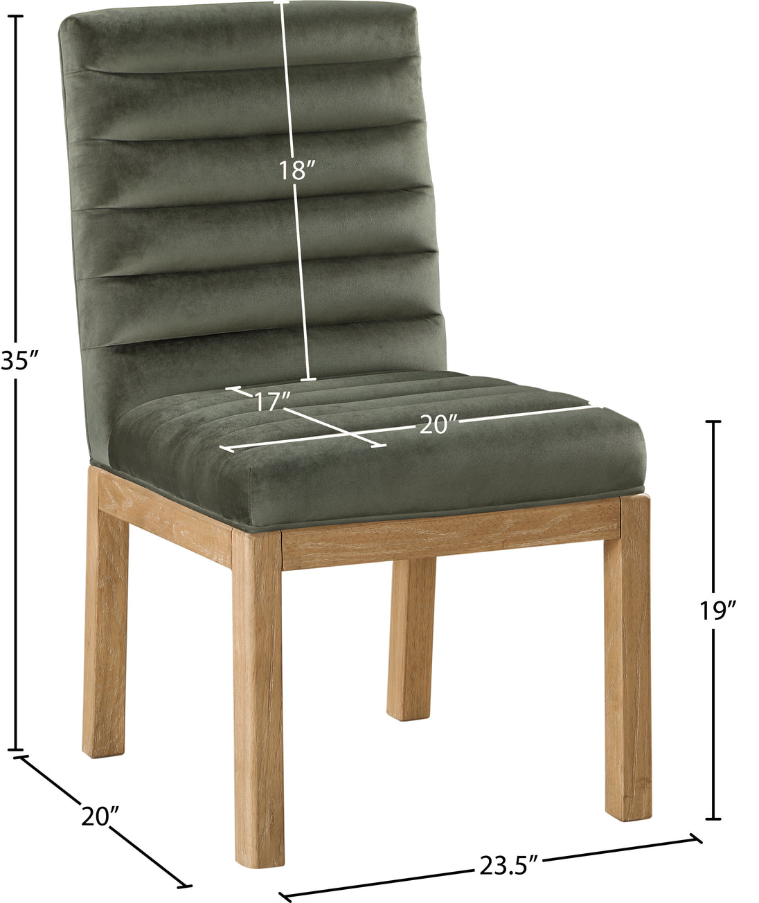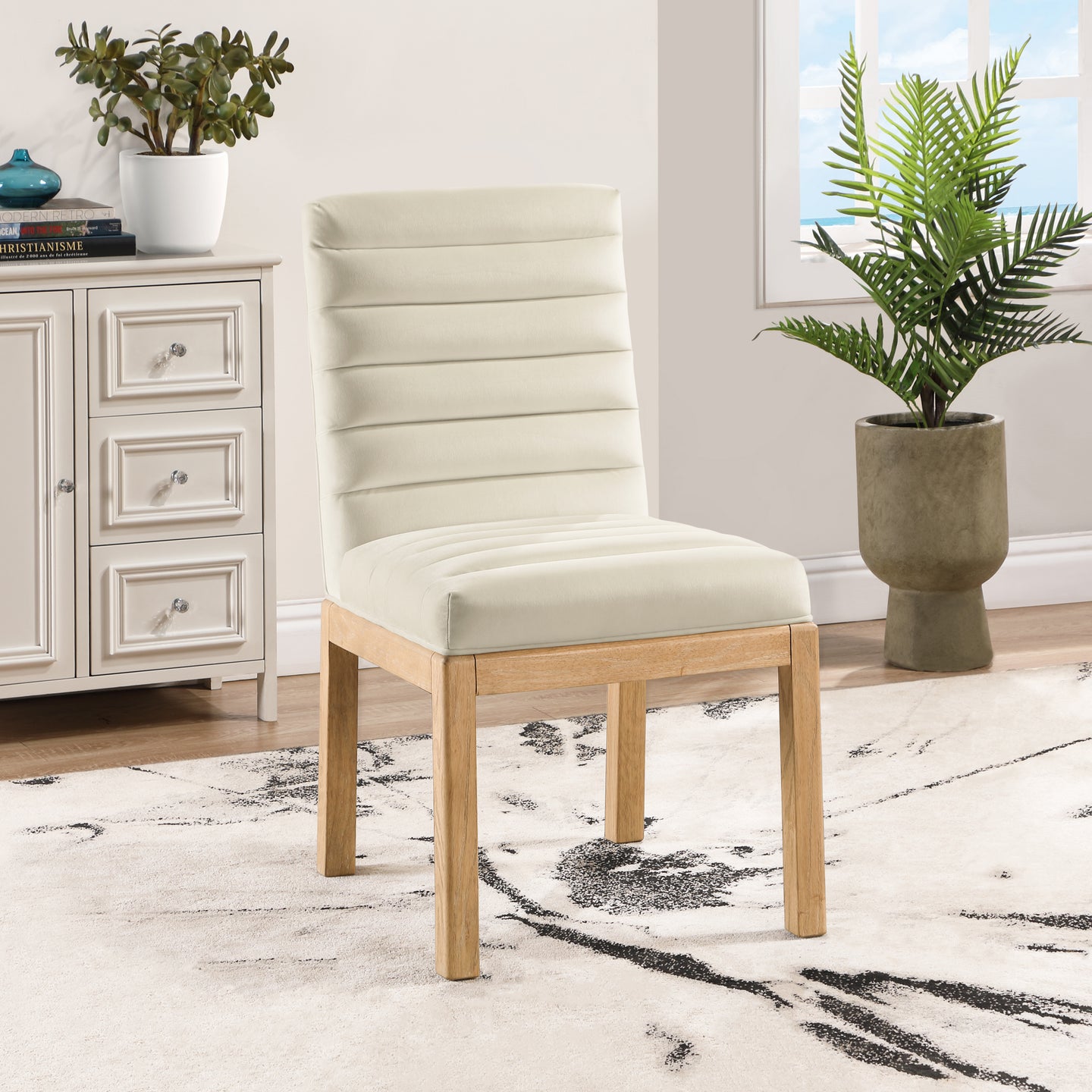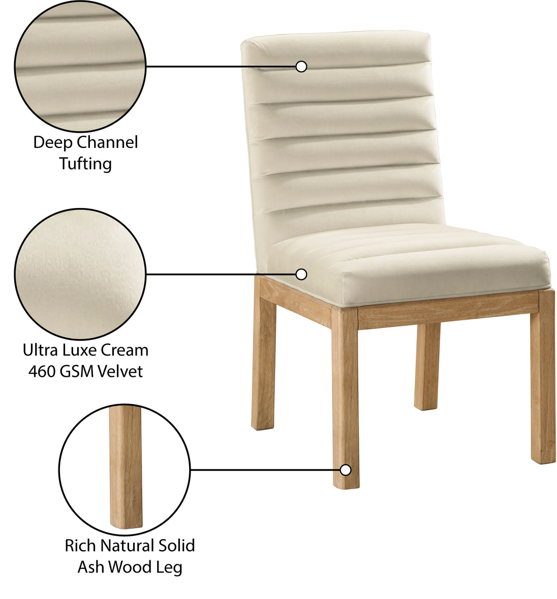 Transform your dining area with the Evelyn dining chair, featuring luxurious black velvet upholstery. Supported by rich natural solid ash wood legs and detailed with deep channel tufting, this chair exudes both durability and opulence. The 460 GSM velvet offers a sumptuous texture, while the contemporary design ensures it makes a striking addition to any space. This chair seamlessly blends style and comfort, perfect for creating a refined dining experience.