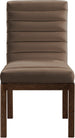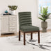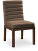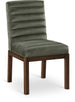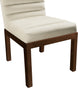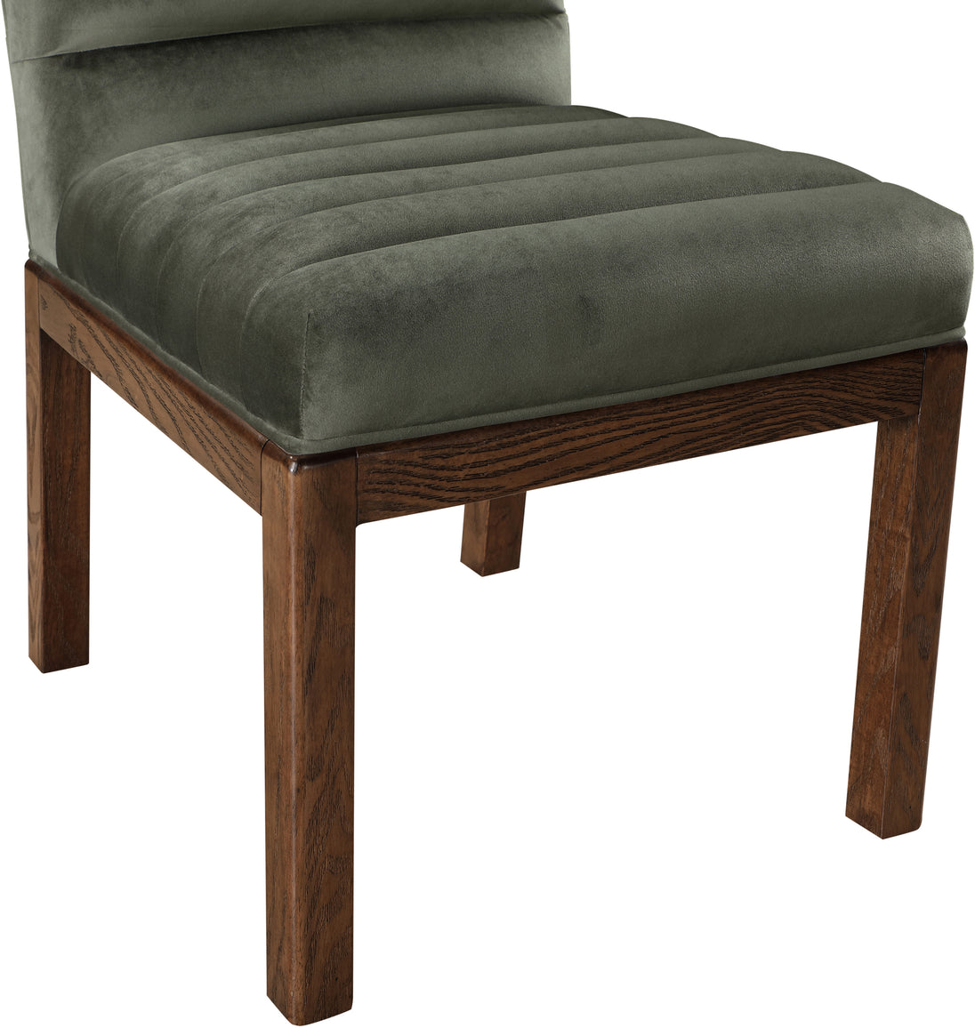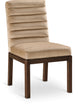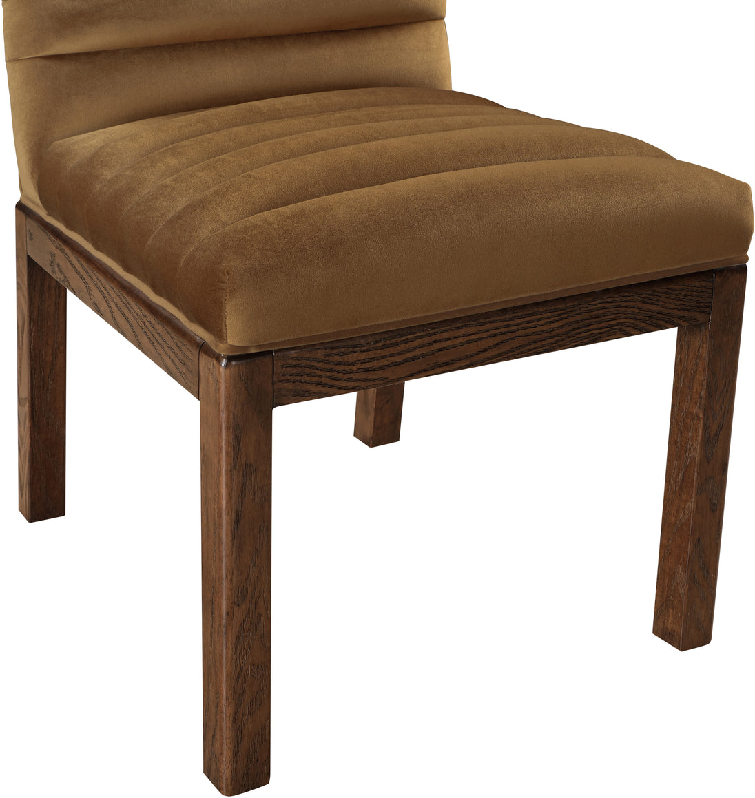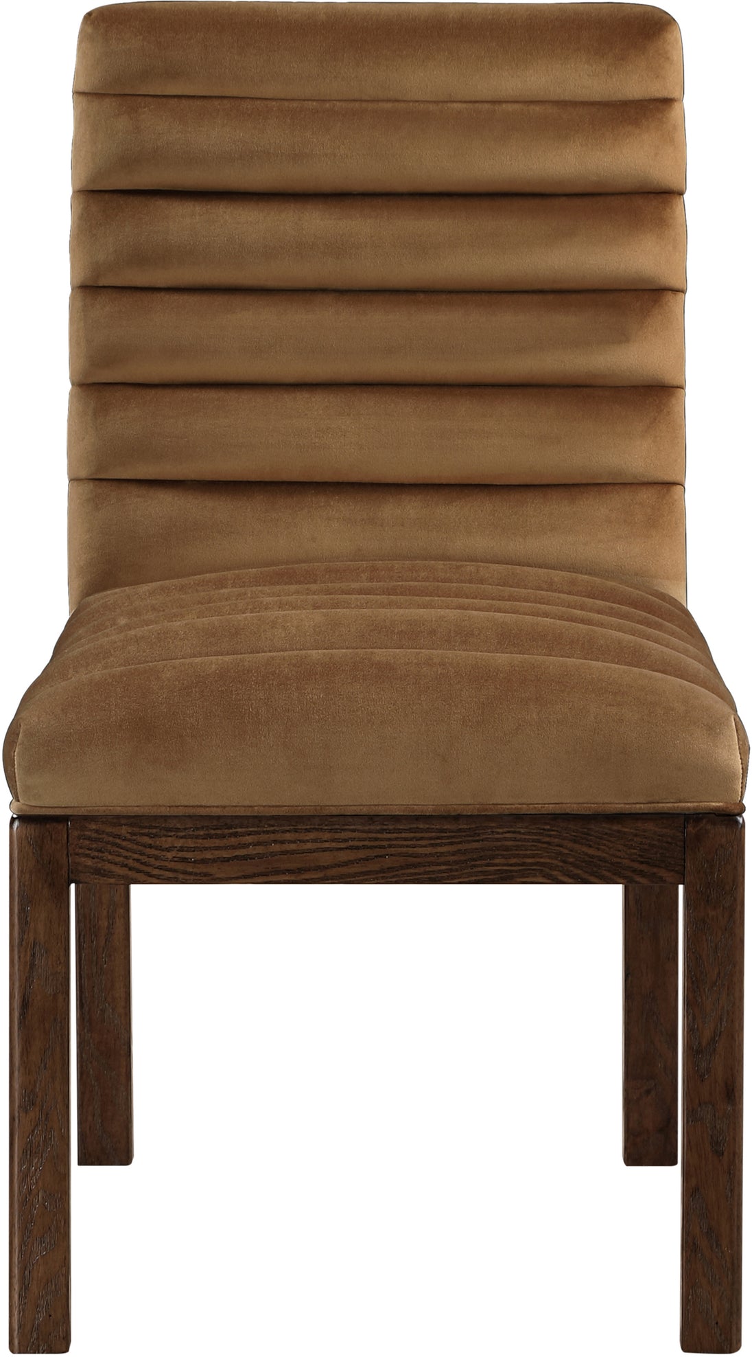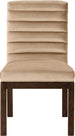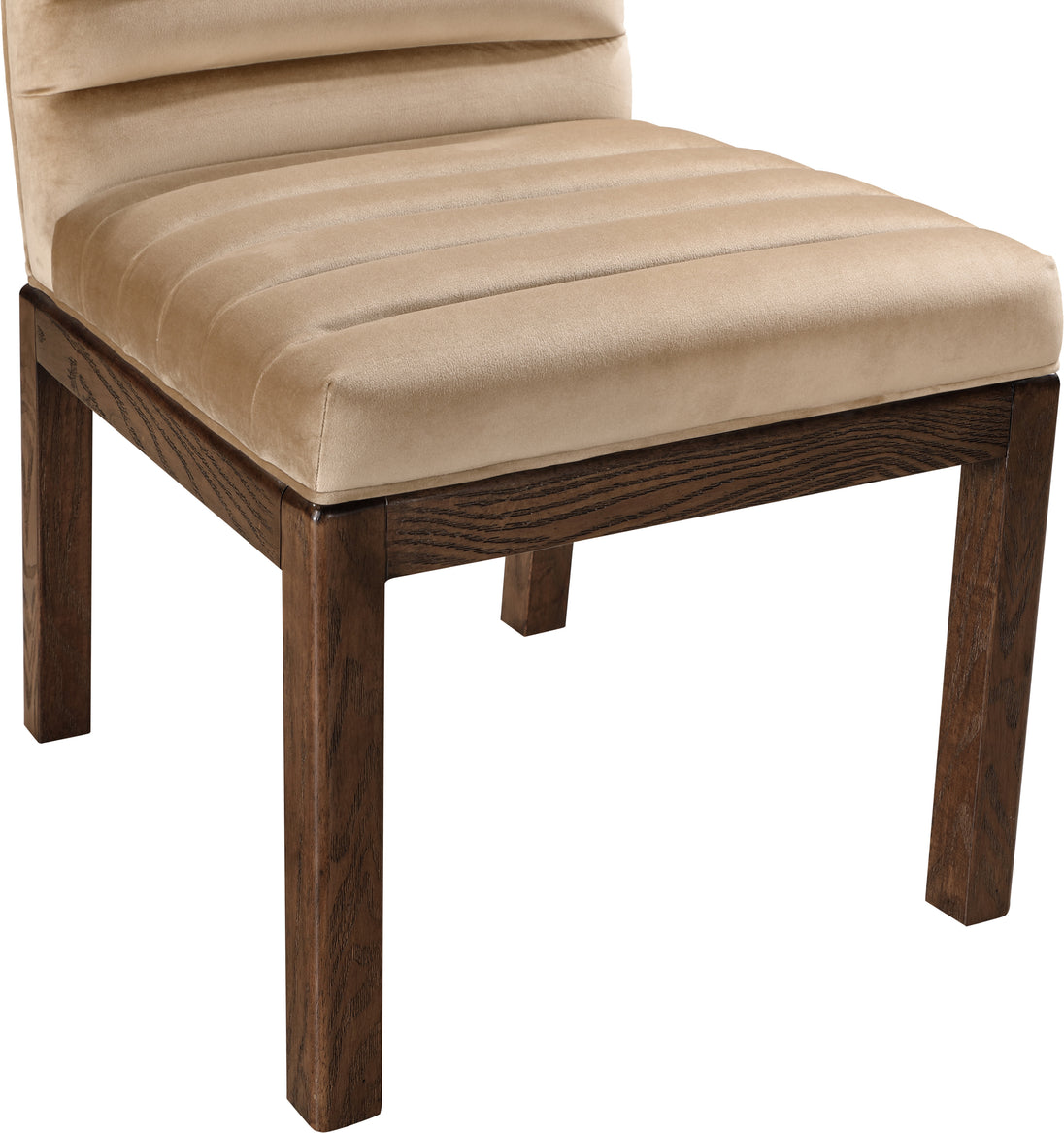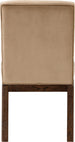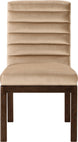Transform your dining area with the Evelyn dining chair, featuring luxurious beige velvet upholstery. Supported by rich walnut brown ash wood legs and detailed with deep channel tufting, this chair exudes both durability and opulence. The 460 GSM velvet offers a sumptuous texture, while the contemporary design ensures it makes a striking addition to any space. This chair seamlessly blends style and comfort, perfect for creating a refined dining experience.